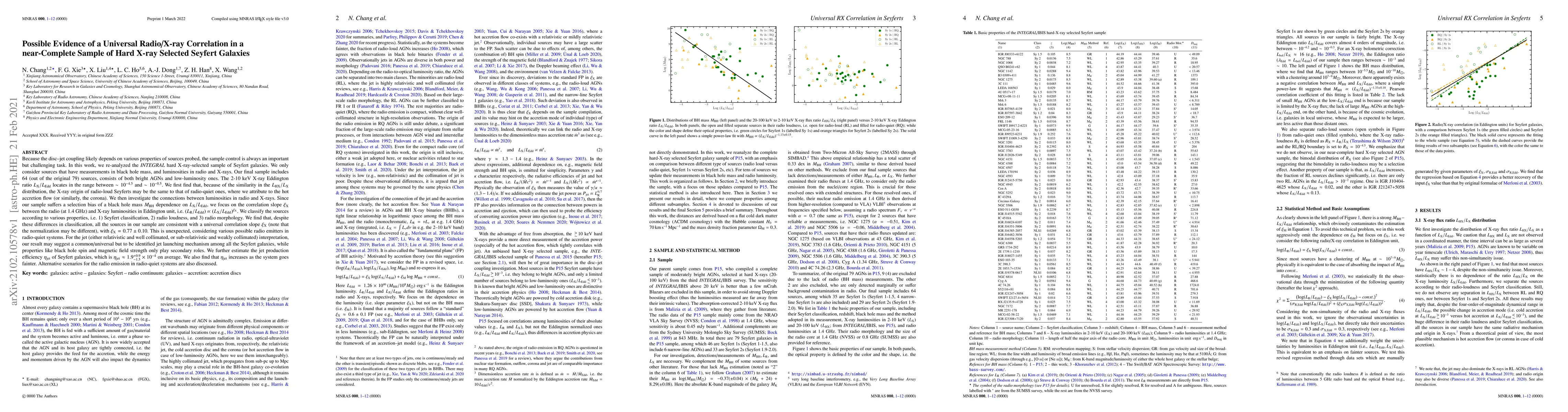This study investigates a near-complete sample of 64 hard X-ray-selected Seyfert galaxies, finding a universal correlation slope $\xi_X=0.77\pm0.10$ between radio and X-ray luminosities, suggesting a common jet launching mechanism across different Seyfert types. The estimated average jet production efficiency is $\eta_{jet}\approx1.9^{+0.9}_{-1.5}\times10^{-4}$, increasing for fainter systems.