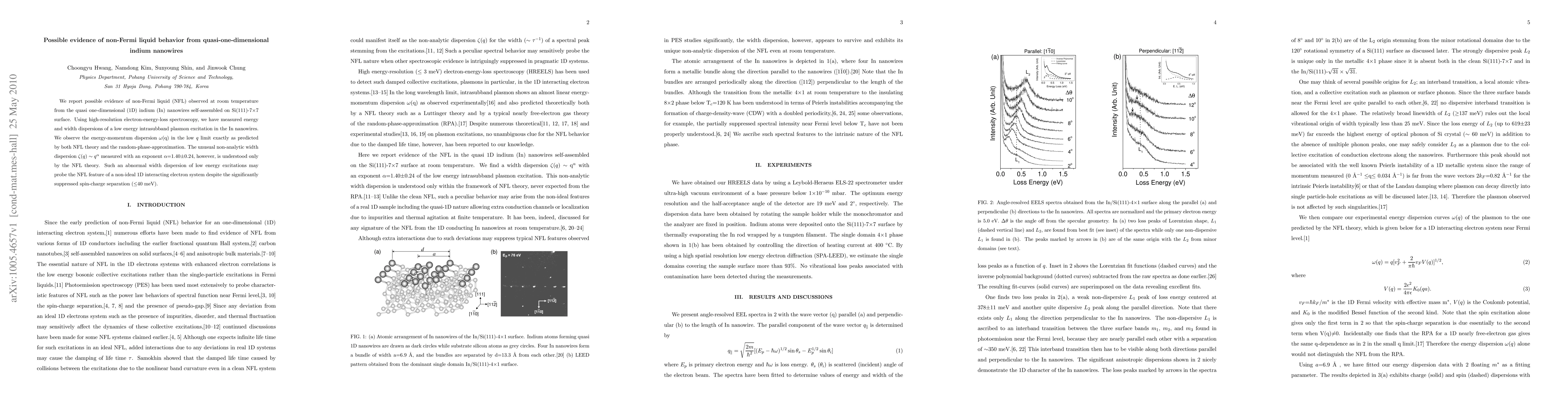 This research reports potential evidence of non-Fermi liquid behavior in quasi-one-dimensional indium nanowires observed at room temperature. The study finds unusual non-analytic width dispersion in low energy excitations, consistent with non-Fermi liquid theory, suggesting a non-ideal 1D interacting electron system.