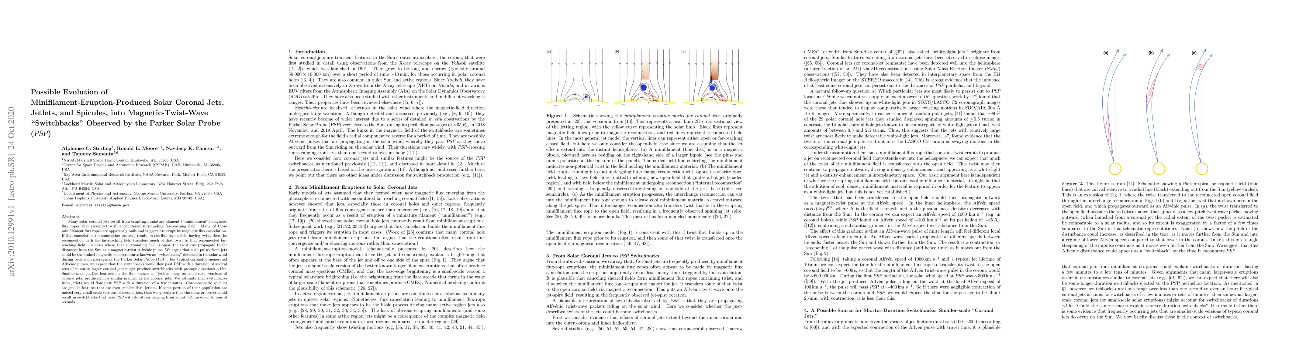 This paper explores the potential evolution of solar coronal jets, jetlets, and spicules into magnetic-twist-wave "switchbacks" observed by the Parker Solar Probe. It suggests that minifilament eruptions driven by magnetic flux cancellation can generate Alfvenic pulses that propagate as switchbacks in the solar wind.