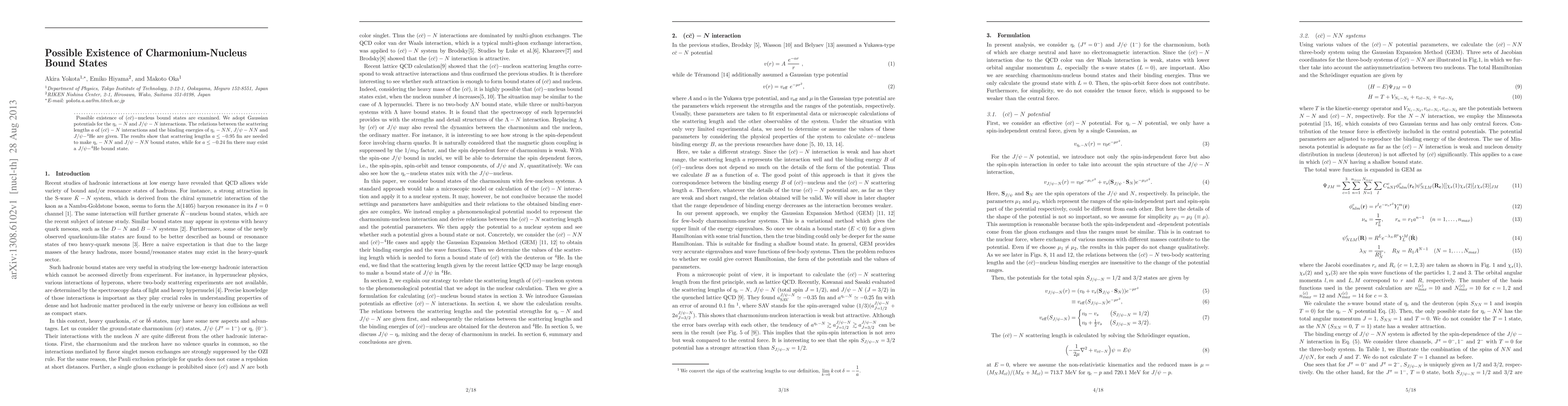 This paper investigates the potential for charmonium-nucleus bound states, using Gaussian potentials to model interactions. It finds that specific scattering lengths are required for $\eta_{c}-NN$ and $J/\psi-NN$ bound states, while a $J/\psi-^{4}$He bound state may exist under different conditions.