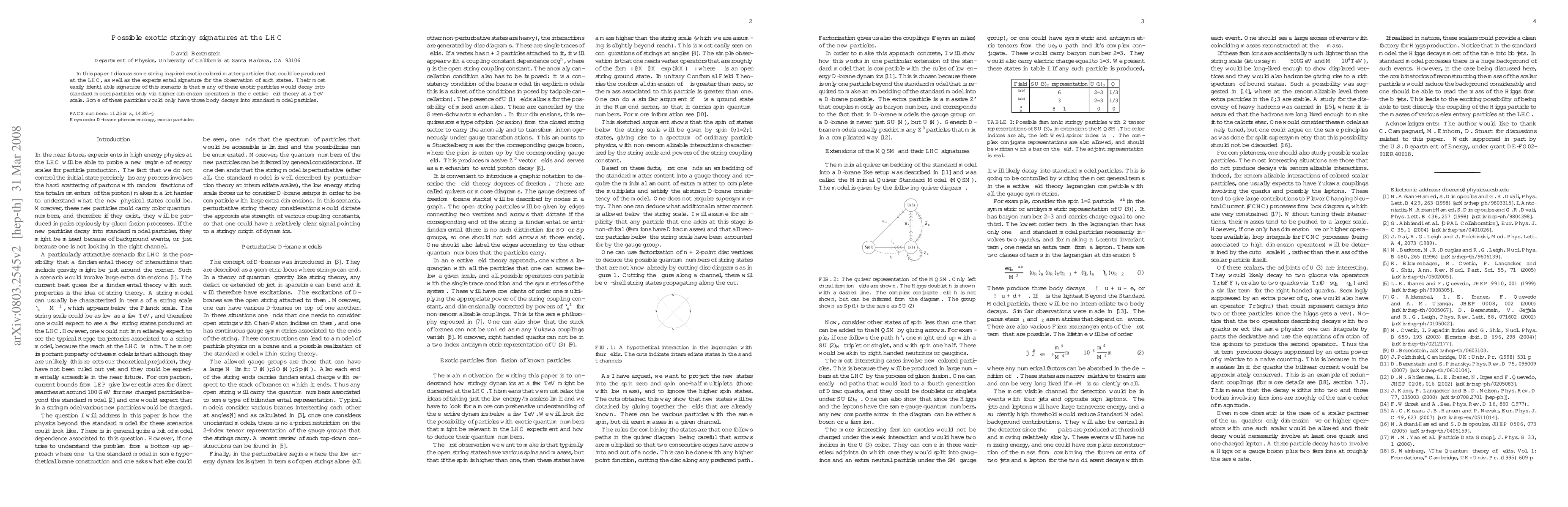 In this paper I discuss some string inspired exotic colored matter particles that could be produced at the LHC, as well as the experimental signature for the observation of such states. Their most easily identifiable signature of this scenario is that many of these exotic particles would decay into standard model particles only via higher dimension operators in the effective field theory at a TeV scale. Some of these particles would only have three body decays into standard model particles.