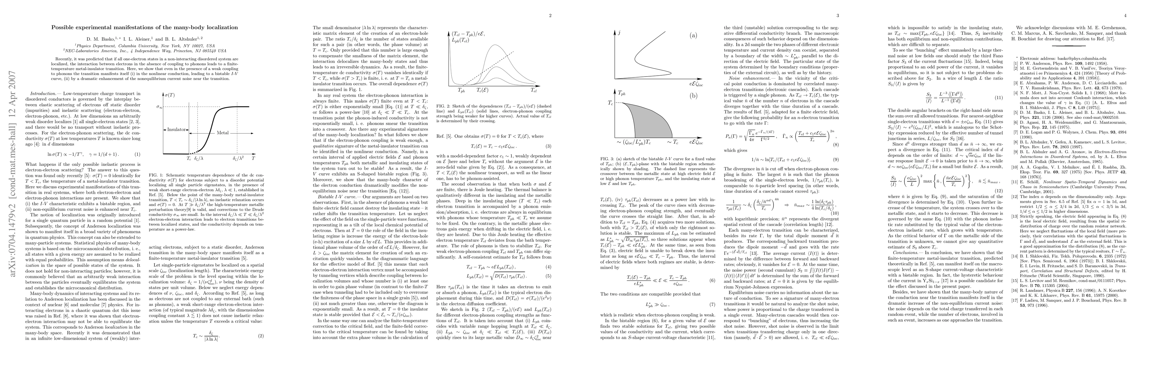 Recently, it was predicted that if all one-electron states in a non-interacting disordered system are localized, the interaction between electrons in the absence of coupling to phonons leads to a finite-temperature metal-insulator trnasition. Here we show that even in the presence of a weak coupling to phonons the transition manifests itself (i) in the nonlinear conduction, leading to a bistable $I$-$V$ curve, (ii) by a dramatic enhancement of the nonequilibrium current noise near the transition.