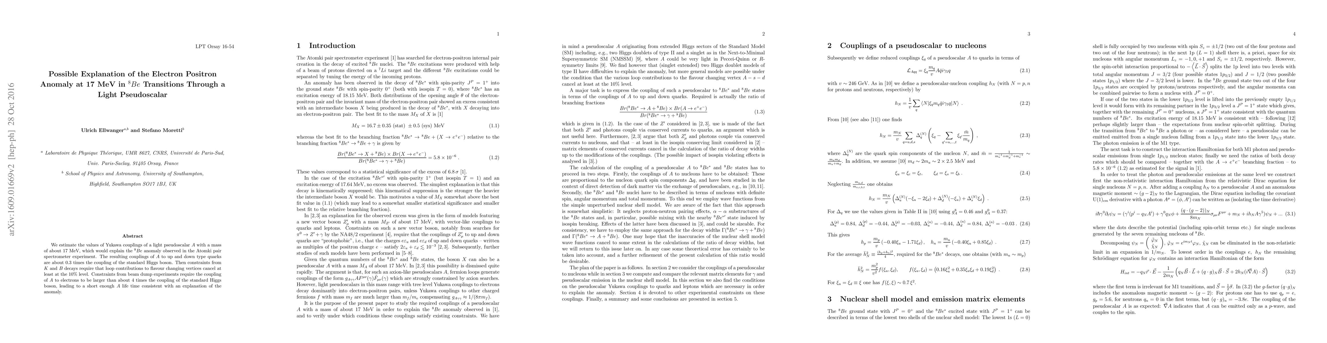 We estimate the values of Yukawa couplings of a light pseudoscalar A with a mass of about 17 MeV, which would explain the $^8Be$ anomaly observed in the Atomki pair spectrometer experiment. The resulting couplings of A to up and down type quarks are about 0.3 times the coupling of the standard Higgs boson. Then constraints from K and B decays require that loop contributions to flavour changing vertices cancel at least at the 10% level. Constraints from beam dump experiments require the coupling of A to electrons to be larger than about 4 times the coupling of the standard Higgs boson, leading to a short enough A life time consistent with an explanation of the anomaly.
