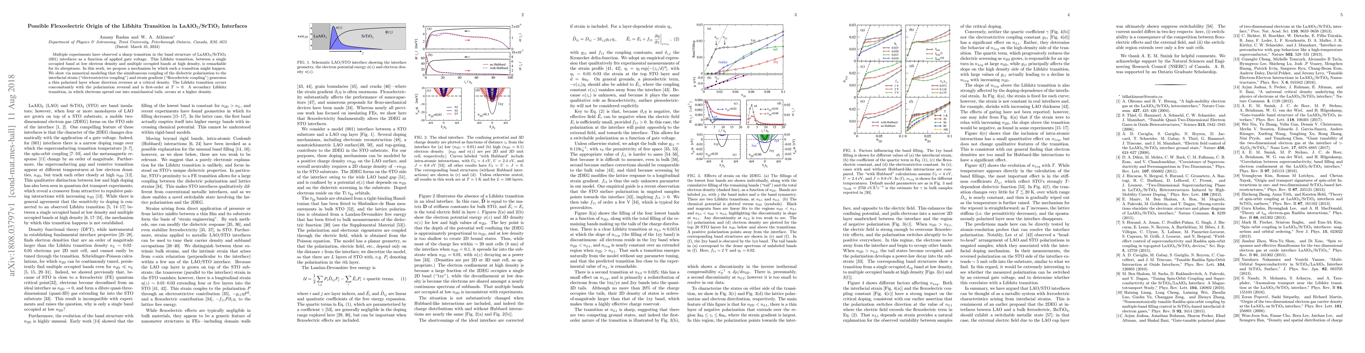 This research proposes a flexoelectric mechanism explaining the abrupt Lifshitz transition in LaAlO3/SrTiO3 interfaces, suggesting that coupling of dielectric polarization to interfacial strain and strain gradient generates a thin polarized layer that reverses direction at a critical electron density, causing the transition. A secondary transition, where electrons occupy semiclassical tails, occurs at higher densities.