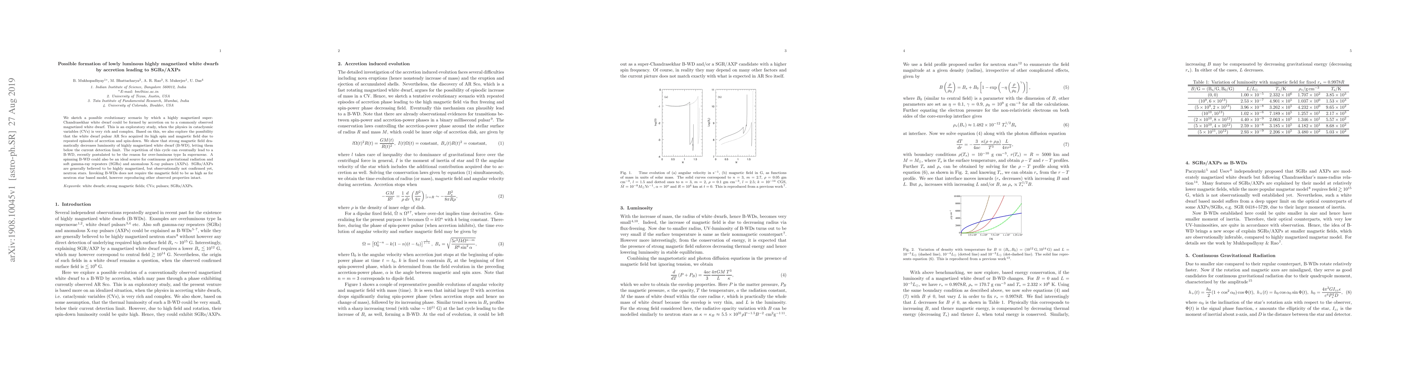 The paper proposes a scenario where highly magnetized super-Chandrasekhar white dwarfs could form via accretion, potentially explaining Soft Gamma-Ray Repeaters (SGRs) and Anomalous X-ray Pulsar (AXPs). It suggests these magnetized white dwarfs (B-WDs) could be less luminous due to strong magnetic fields, undetected currently but fitting over-luminous type Ia supernovae data. B-WDs are also proposed as continuous gravitational radiation sources and alternatives to neutron star models for SGRs/AXPs.