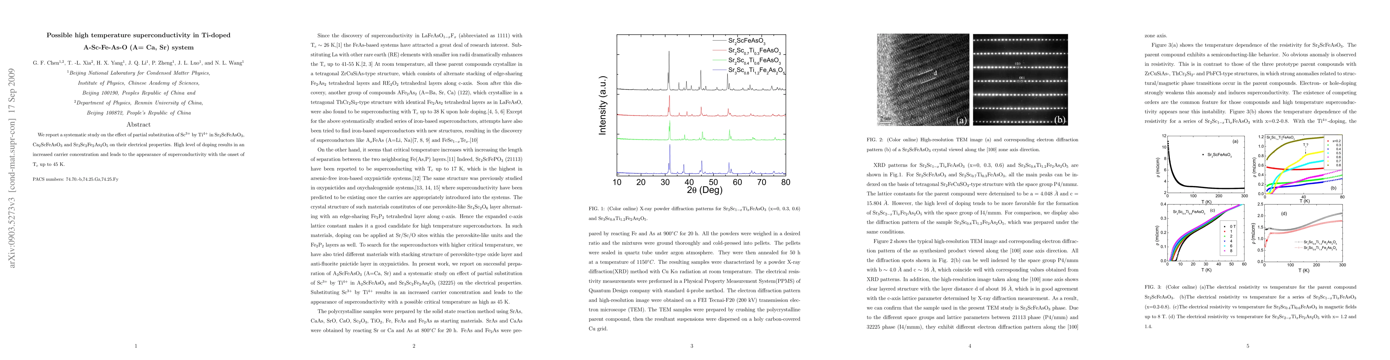 Researchers discovered superconductivity in a new material by doping titanium into iron-based arsenic oxide compounds, achieving temperatures of up to 45 K.