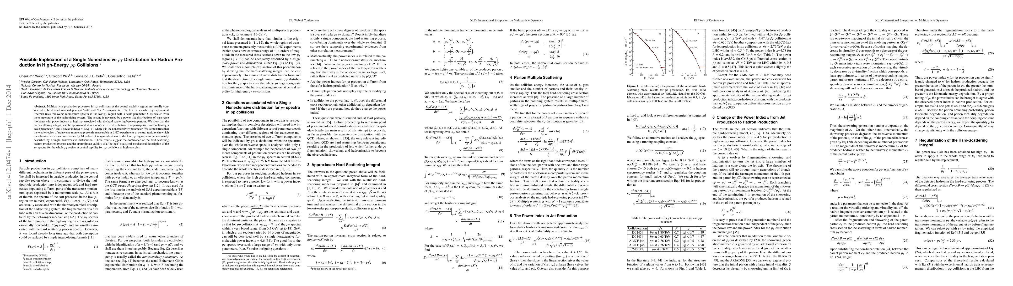 This paper demonstrates that a single nonextensive $p_T$ distribution can describe multiparticle production across the entire range of transverse momenta in high-energy $pp$ collisions at central rapidity, suggesting the dominance of hard-scattering processes and supporting a "no-hair" statistical-mechanical model for the $p_T$ spectra.