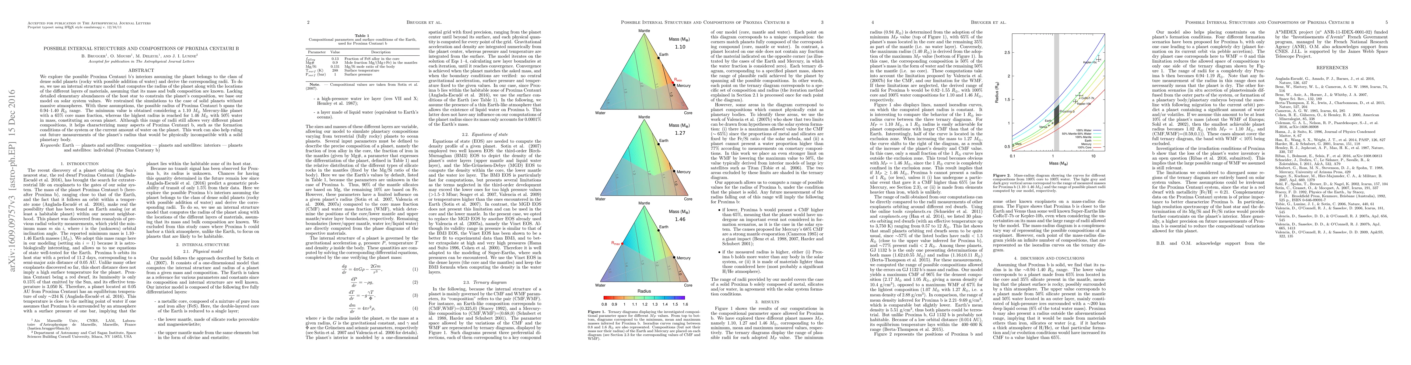 This paper investigates the internal structures and compositions of Proxima Centauri b, modeling its radius and material layers based on solar system values. The derived radius range of 0.94-1.40 $R_\oplus$ suggests diverse compositions, from a Mercury-like core to an ocean planet, aiding in understanding the planet's formation and water content.