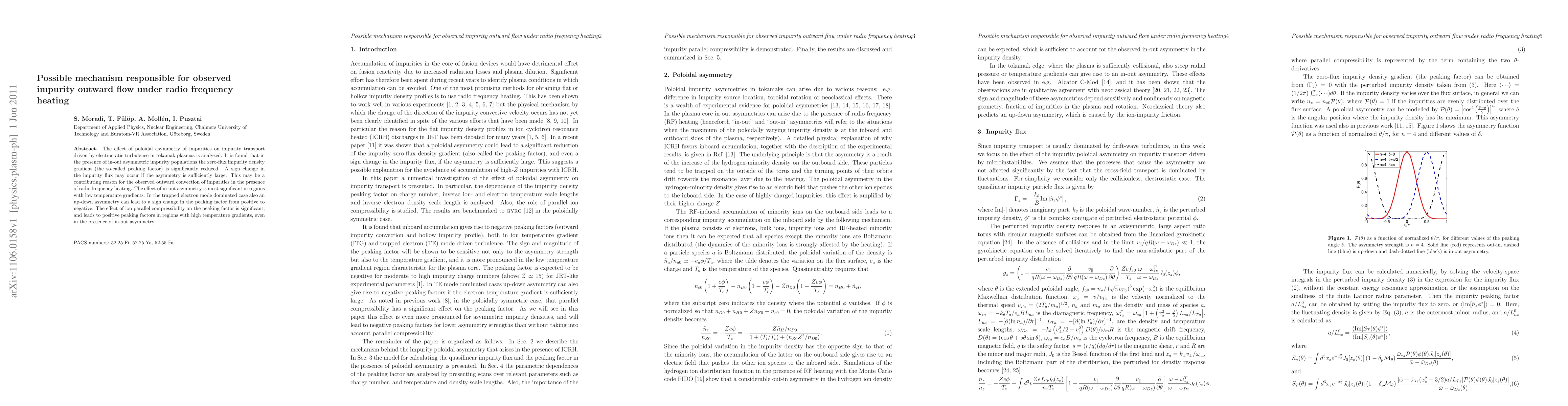 The effect of poloidal asymmetry of impurities on impurity transport driven by electrostatic turbulence in tokamak plasmas is analyzed. It is found that in the presence of in-out asymmetric impurity populations the zero-flux impurity density gradient (the so-called peaking factor) is significantly reduced. A sign change in the impurity flux may occur if the asymmetry is sufficiently large. This may be a contributing reason for the observed outward convection of impurities in the presence of radio frequency heating. The effect of in-out asymmetry is most significant in regions with low temperature gradients. In the trapped electron mode dominated case also an up-down asymmetry can lead to a sign change in the peaking factor from positive to negative. The effect of ion parallel compressibility on the peaking factor is significant, and leads to positive peaking factors in regions with high temperature gradients, even in the presence of in-out asymmetry.
