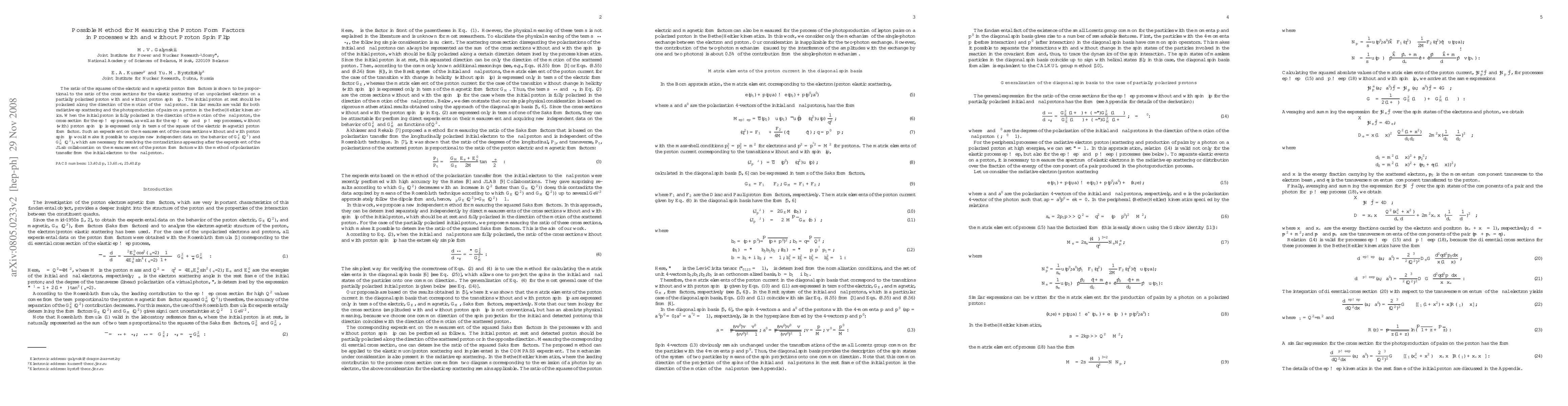 The ratio of the squares of the electric and magnetic proton form factors is shown to be proportional to the ratio of the cross sections for the elastic scattering of an unpolarized electron on a partially polarized proton with and without proton spin flip. The initial proton at rest should be polarized along the direction of the motion of the final proton. Similar results are valid for both radiative $ep$ scattering and the photoproduction of pairs on a proton in the Bethe--Heitler kinematics. When the initial proton is fully polarized in the direction of the motion of the final proton, the cross section for the $ep \to ep$ process, as well as for the $ep \to ep \gamma$ and $\gamma p \to e \bar e p$ processes, without (with) proton spin flip is expressed only in terms of the square of the electric (magnetic) proton form factor. Such an experiment on the measurement of the cross sections without and with proton spin flip would make it possible to acquire new independent data on the behavior of $G_E^2(Q^2)$ and $G_M^2(Q^2)$, which are necessary for resolving the contradictions appearing after the experiment of the JLab collaboration on the measurement of the proton form factors with the method of polarization transfer from the initial electron to the final proton.