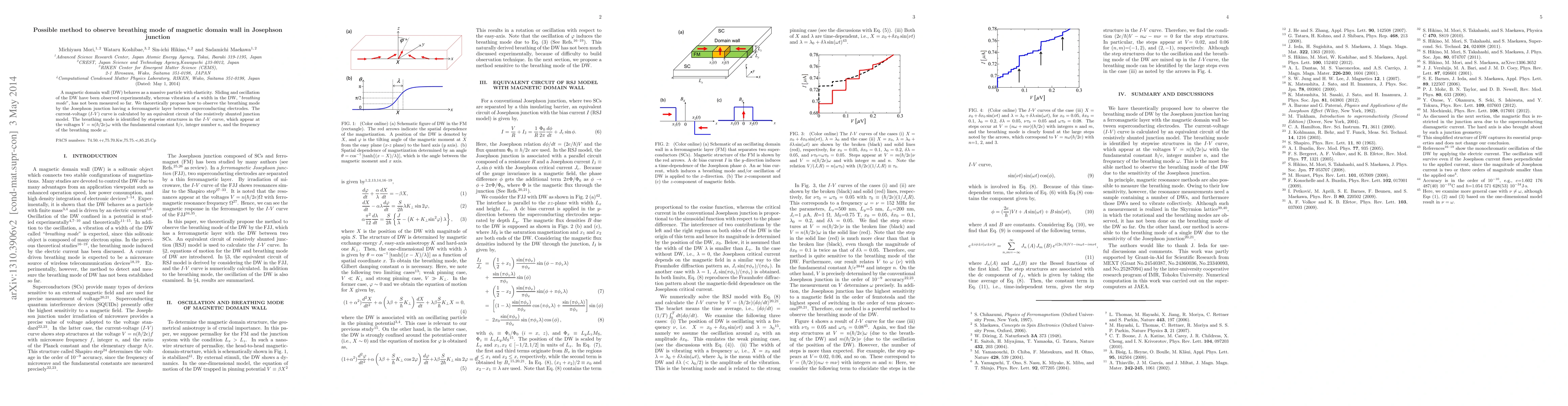 This paper proposes a theoretical method to observe the "breathing mode" of a magnetic domain wall using a Josephson junction with a ferromagnetic layer. The breathing mode, which has not been measured before, can be identified by stepwise structures in the current-voltage curve, correlating to specific voltage values.