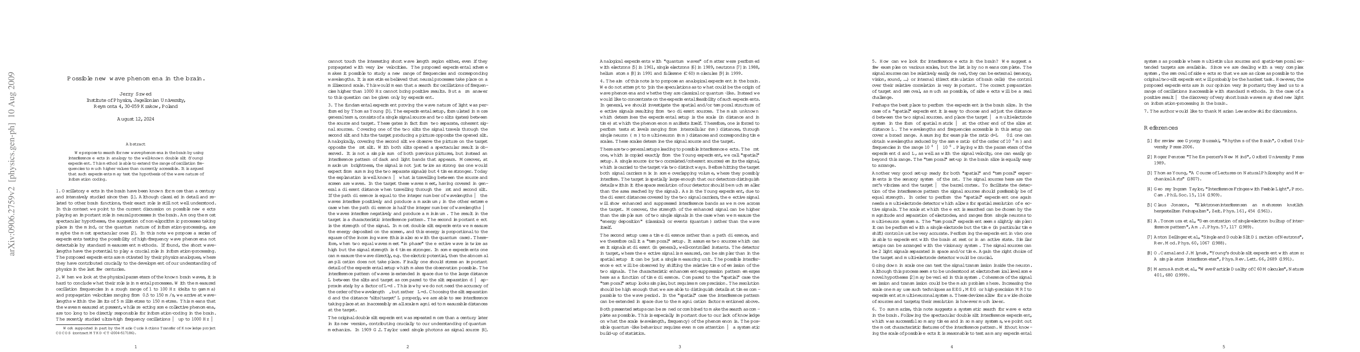 We propose to search for new wave phenomena in the brain by using interference effects in analogy to the well-known double slit (Young) experiment. This method is able to extend the range of oscillation frequencies to much higher values than currently accessible. It is argued that such experiments may test the hypothesis of the wave nature of information coding.
