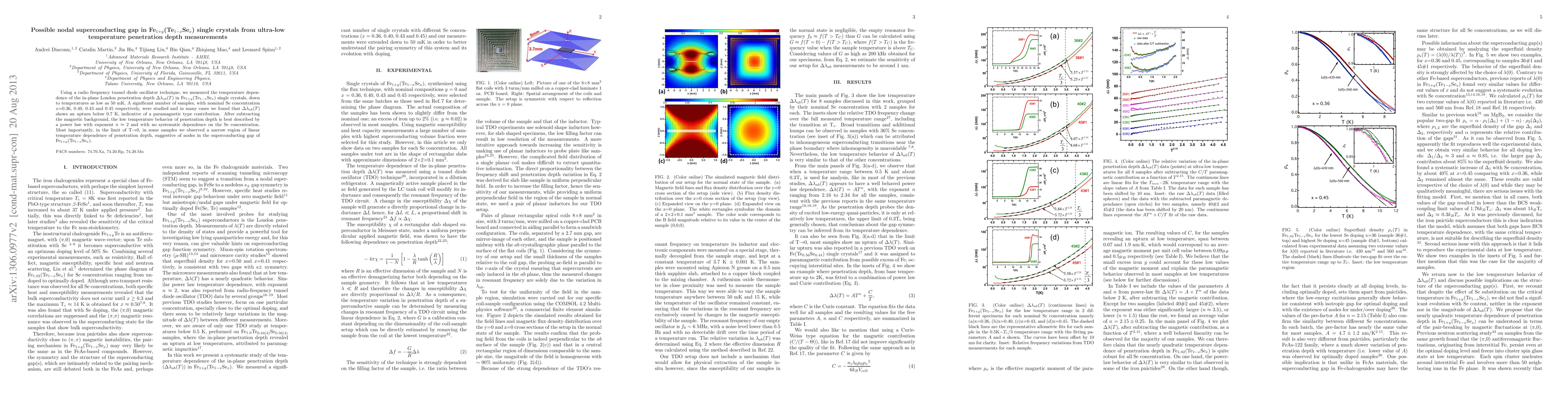 This study uses ultra-low temperature measurements to investigate the superconducting properties of Fe$_{1+y}$(Te$_{1-x}$Se$_{x}$) single crystals, revealing an upturn in penetration depth indicative of paramagnetic effects and a potential nodal superconducting gap in some samples. The findings suggest a power-law behavior with a specific exponent and a linear temperature dependence near absolute zero.