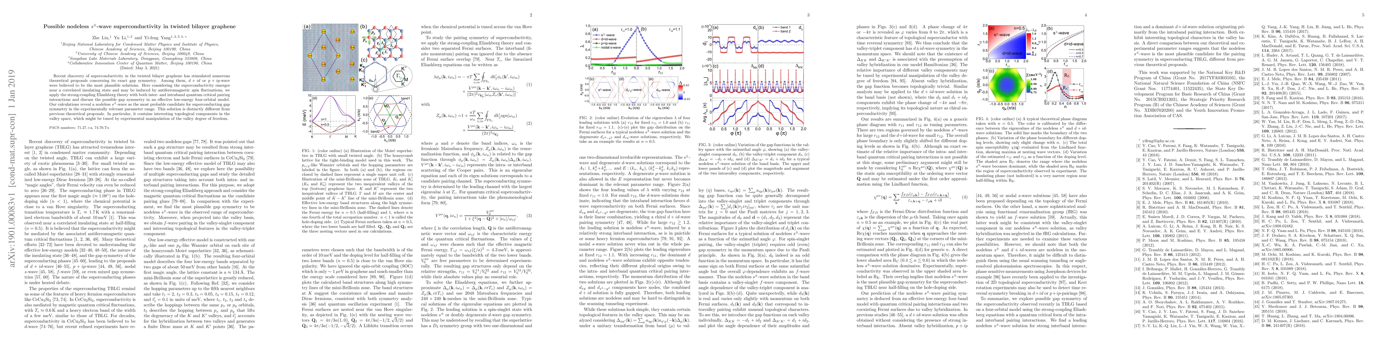 This paper proposes that twisted bilayer graphene may exhibit nodeless $s^\pm$-wave superconductivity, differing from previous $d+id$ or $p+ip$-wave hypotheses. The study uses strong-coupling Eliashberg theory to suggest this unconventional superconductivity, potentially induced by antiferromagnetic spin fluctuations.