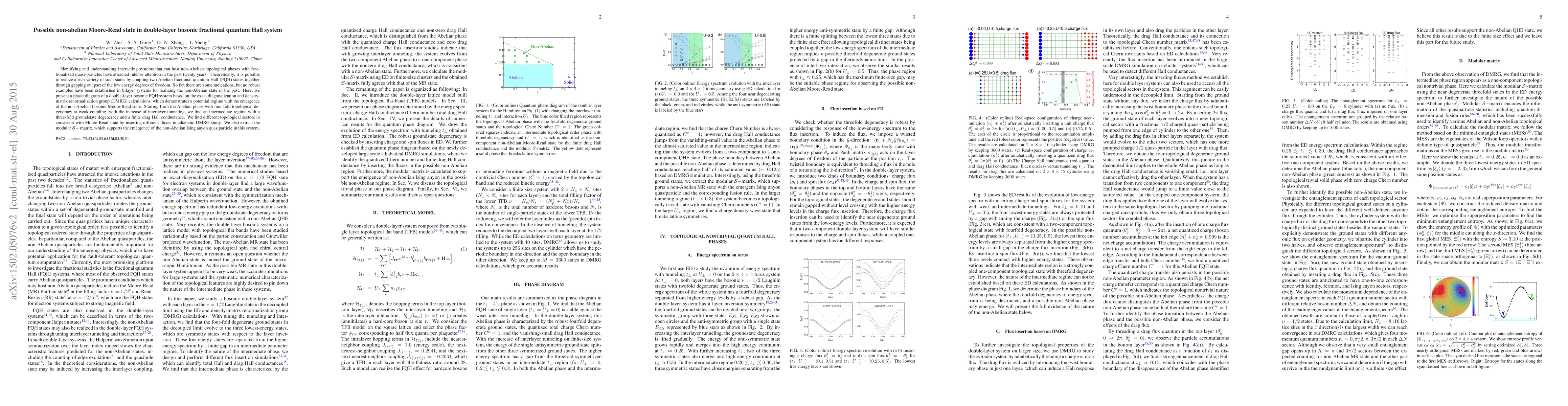 This paper demonstrates through exact diagonalization and density-matrix renormalization group calculations that a double-layer bosonic fractional quantum Hall system can potentially host a non-Abelian Moore-Read state, characterized by a threefold ground state degeneracy and non-Abelian anyons. The study identifies an intermediate regime transitioning from a fourfold Abelian phase with topological degeneracies to the non-Abelian phase.