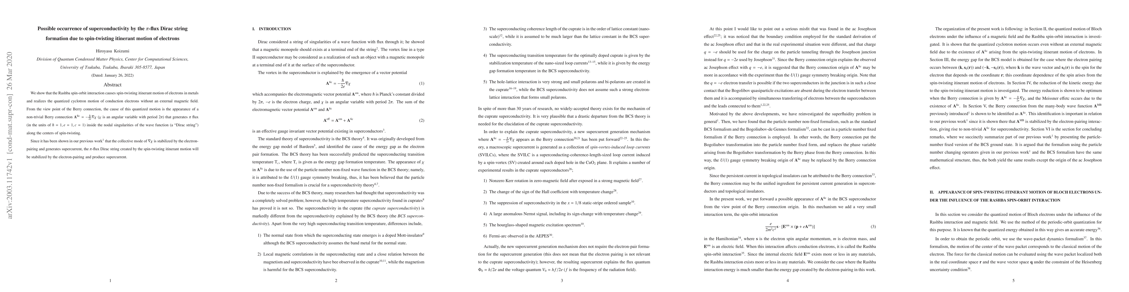 This paper demonstrates that the Rashba spin-orbit interaction induces spin-twisting in itinerant electrons, leading to quantized cyclotron motion without an external magnetic field. The formation of a $\pi$-flux Dirac string due to this motion, stabilized by electron-pairing, suggests the potential for superconductivity.