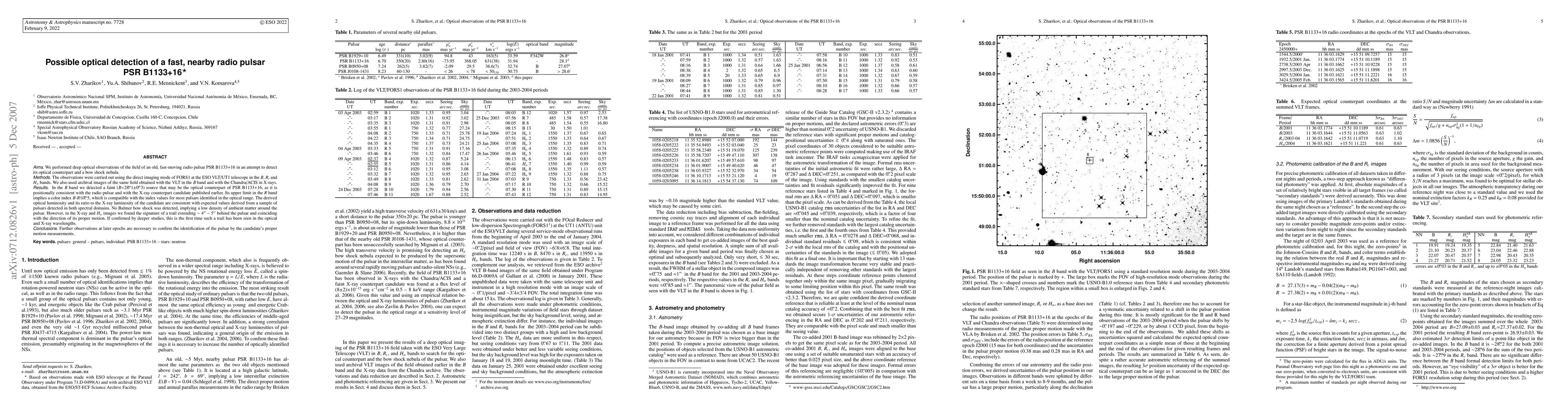 Researchers used the VLT telescope to detect a faint optical source that may be the counterpart of the fast radio pulsar PSR B1133+16, consistent with its radio and X-ray positions. They also found a trail in X-ray and H_alpha images, potentially caused by the pulsar's motion, marking the first optical and X-ray detection of such a feature. Further observations are needed for confirmation.