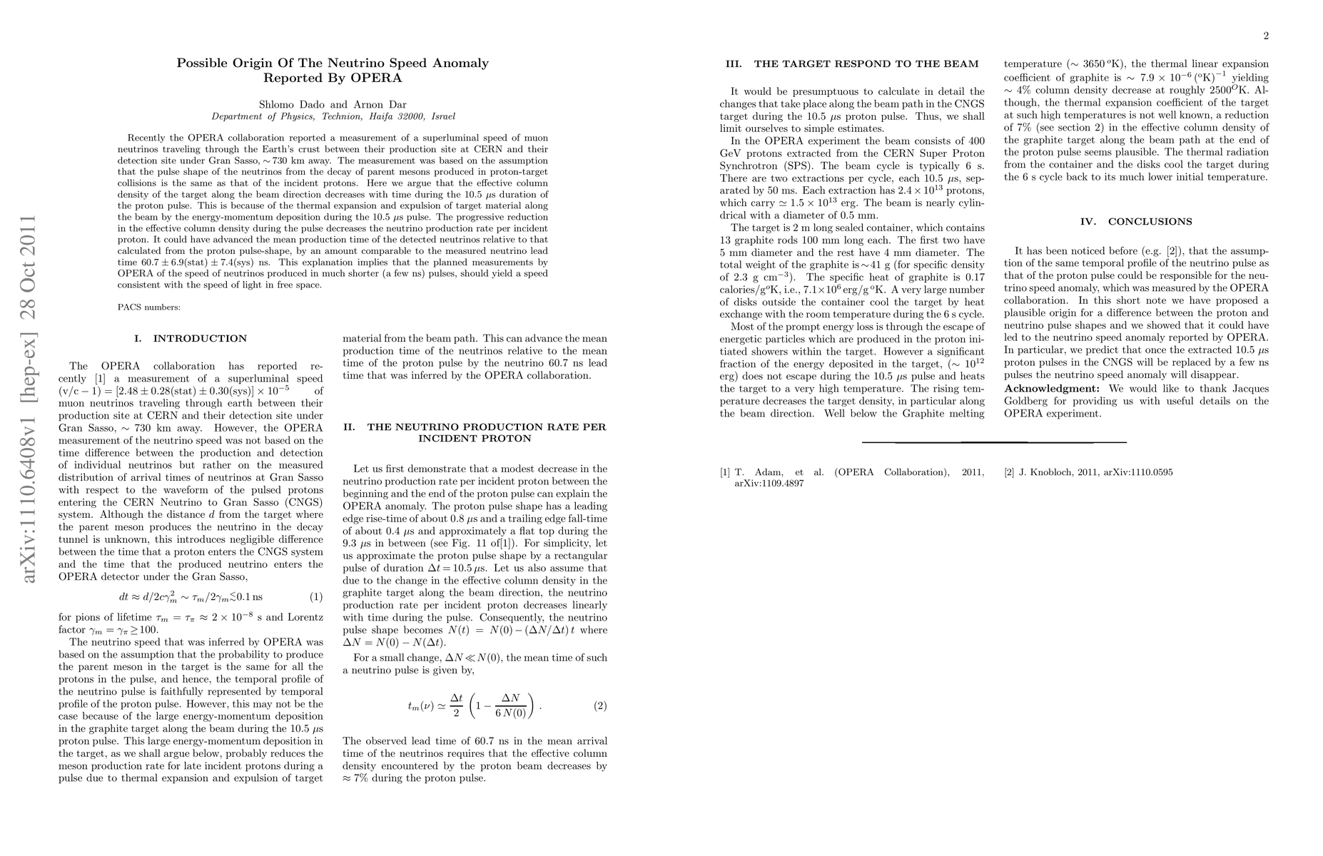 The OPERA collaboration reported a superluminal speed of muon neutrinos, but this paper suggests that thermal expansion and expulsion of target material during the proton pulse could have advanced the neutrino production time, explaining the anomaly. Future measurements with shorter pulses should yield consistent neutrino speeds.