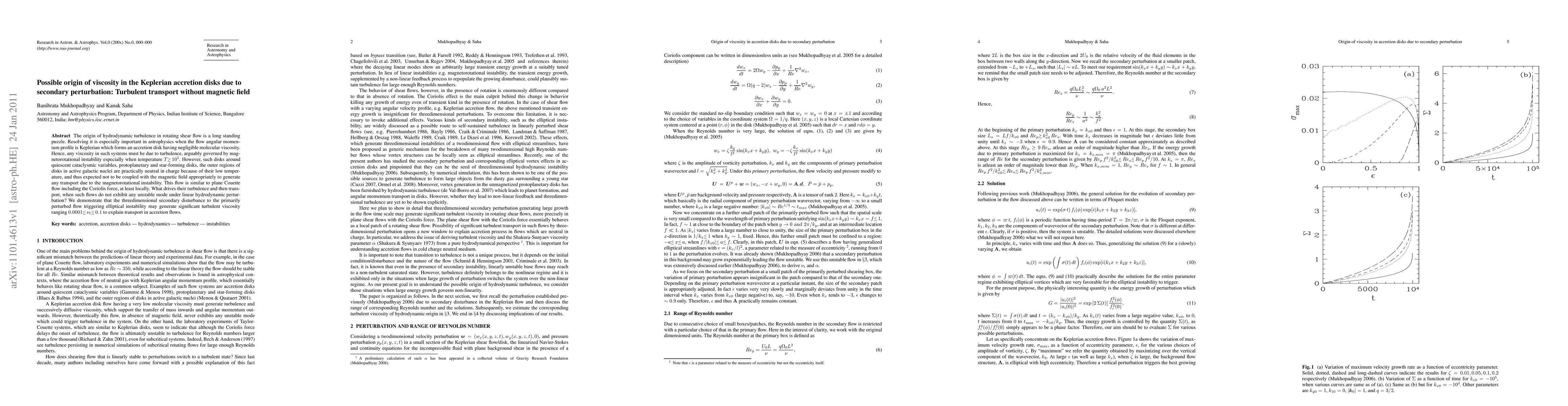 This paper investigates the origin of hydrodynamic turbulence in Keplerian accretion disks without magnetic fields, proposing that secondary perturbations can induce elliptical instability, leading to turbulent viscosity and transport. The study suggests that turbulence in low-temperature disks is driven by three-dimensional disturbances rather than magnetorotational instability.