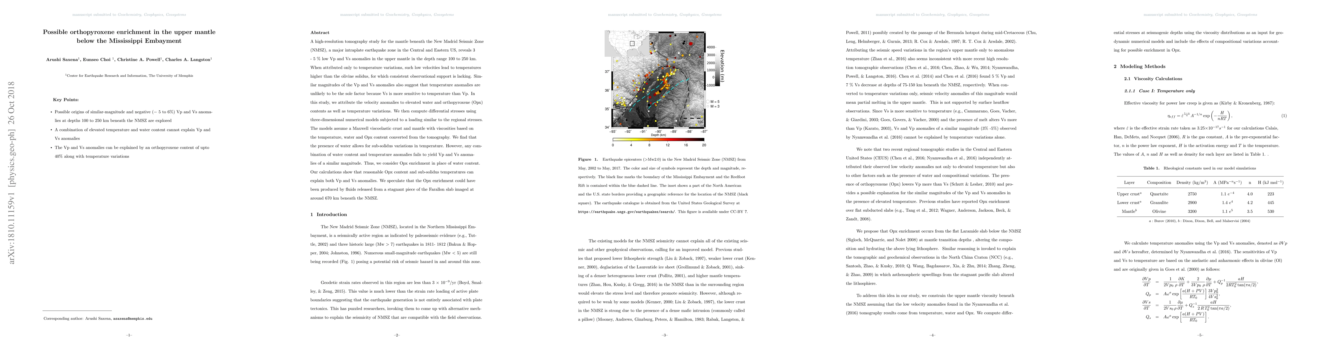 A high-resolution tomography study reveals 3-5% low velocity anomalies in the upper mantle beneath the New Madrid Seismic Zone, attributed to orthopyroxene (Opx) enrichment and sub-solidus temperature variations, rather than temperature alone, suggesting fluid release from a stagnant Farallon slab as a potential cause.