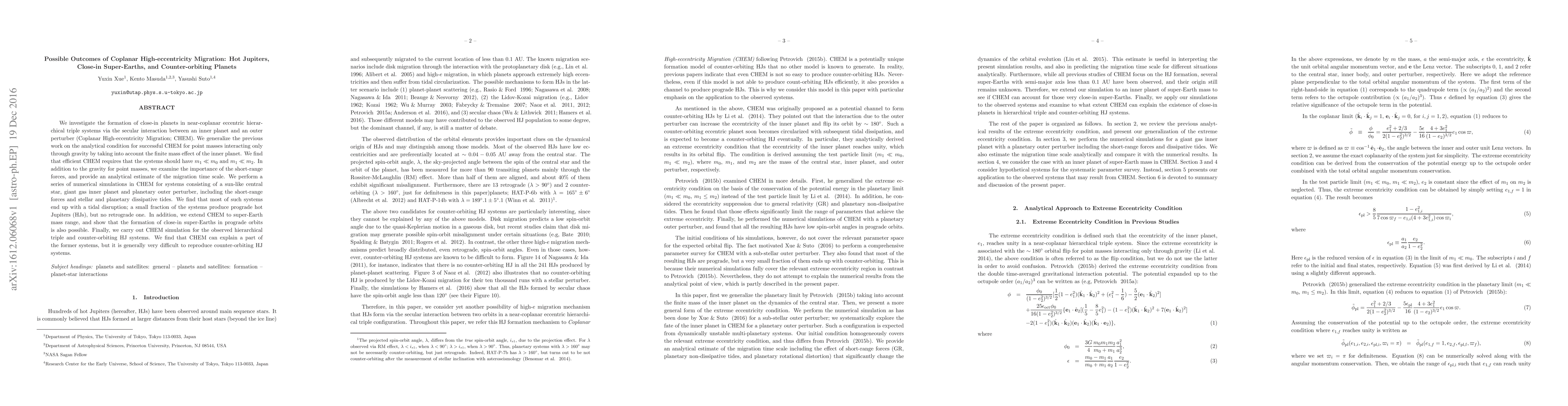 and an outer perturber (Coplanar High-eccentricity Migration, CHEM). We