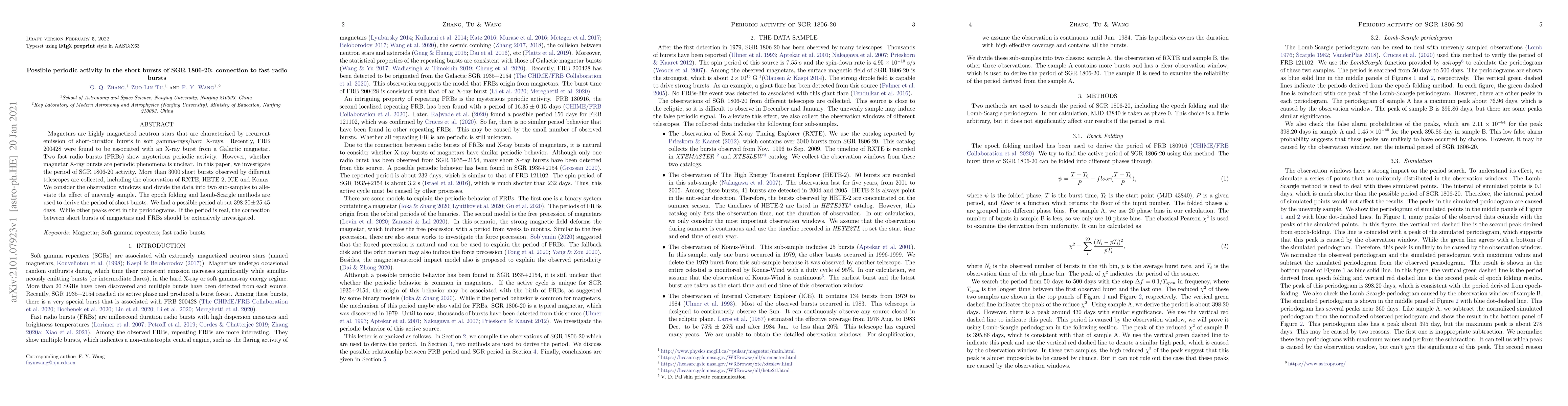 Magnetars are highly magnetized neutron stars that are characterized by recurrent emission of short-duration bursts in soft gamma-rays/hard X-rays. Recently, FRB 200428 were found to be associated with an X-ray burst from a Galactic magnetar. Two fast radio bursts (FRBs) show mysterious periodic activity. However, whether magnetar X-ray bursts are periodic phenomena is unclear. In this paper, we investigate the period of SGR 1806-20 activity. More than 3000 short bursts observed by different telescopes are collected, including the observation of RXTE, HETE-2, ICE and Konus. We consider the observation windows and divide the data into two sub-samples to alleviate the effect of unevenly sample. The epoch folding and Lomb-Scargle methods are used to derive the period of short bursts. We find a possible period about $ 398.20 \pm 25.45 $ days. While other peaks exist in the periodograms. If the period is real, the connection between short bursts of magnetars and FRBs should be extensively investigated.