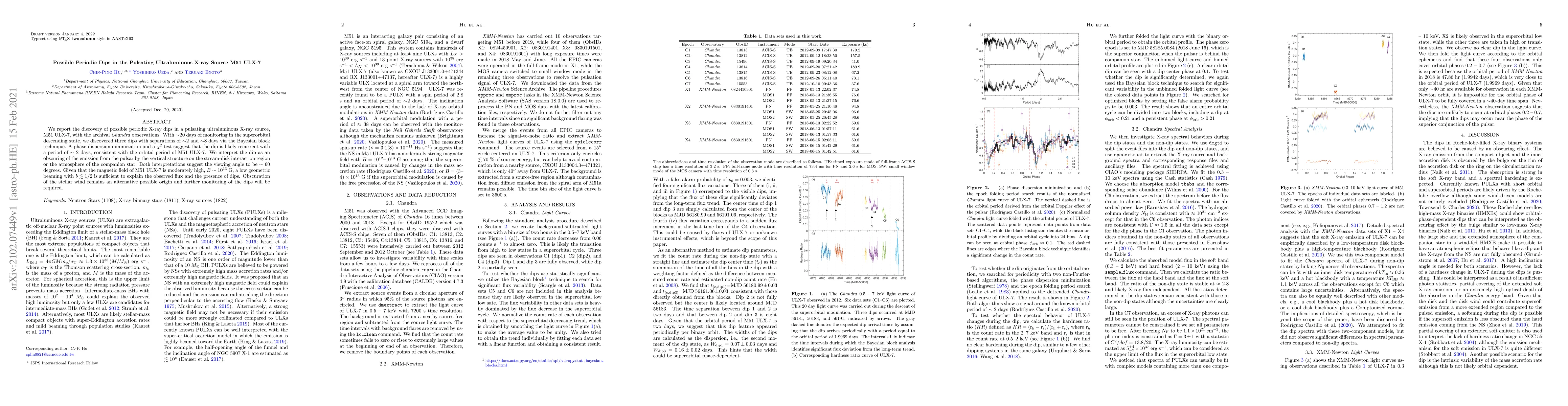 This paper reports the discovery of periodic X-ray dips in M51 ULX-7, suggesting a recurrent phenomenon with a period of ~2 days, likely due to obscuration by the stream-disk interaction region or the companion star's atmosphere. The findings imply a viewing angle of ~60 degrees and low geometric beaming.
