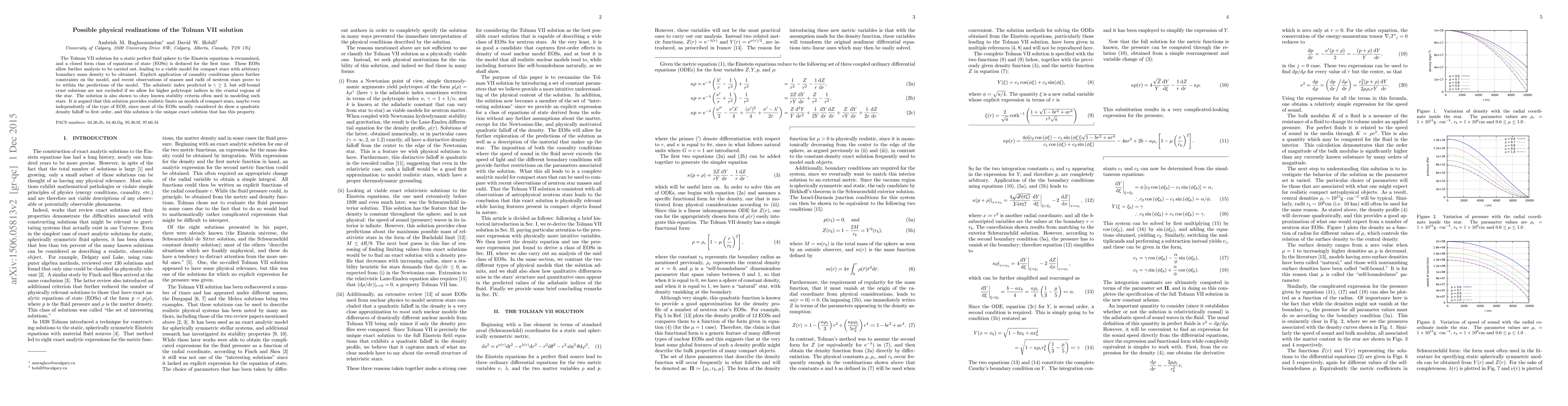 The Tolman VII solution (an exact static spherically symmetric perfect fluid solution) to the Einstein equations is reexamined, and a closed form equation of state (EOS) is deduced for the first time. This EOS allows further analysis leading to a viable model for compact stars to be obtained. Explicit application of causality conditions places further constraints on the model, and recent measurements of masses and radii of neutron stars prove to be within the predictions of the model. It is found that the adiabatic index ${\gamma} \geq 2$, and self-bound crust solutions are not excluded. The solution is also shown to obey known stability criteria. It is argued that this solution provides realistic limits on models of compact stars.