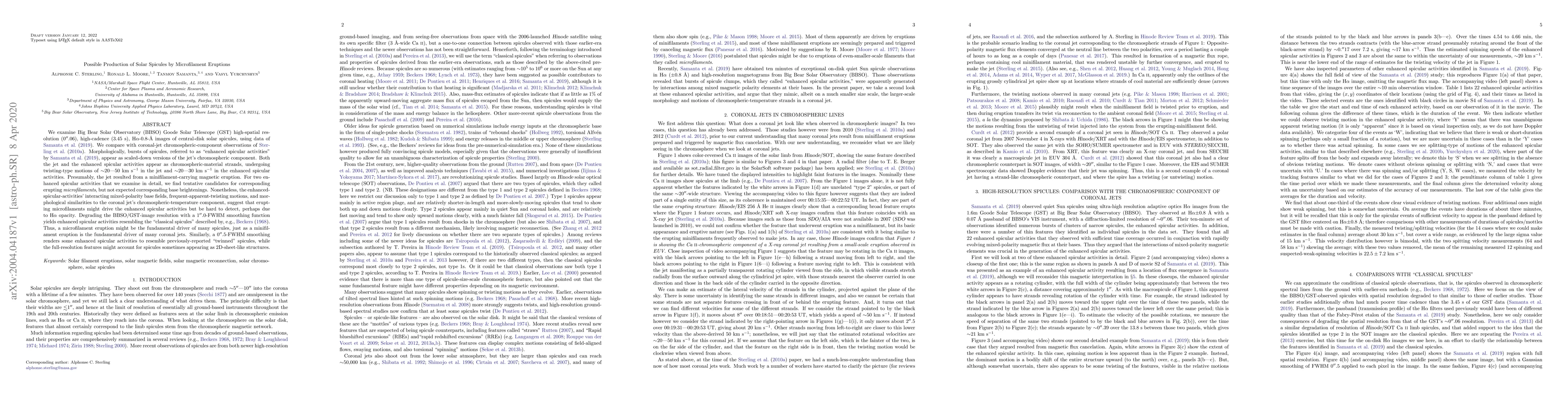 This study investigates the potential role of microfilament eruptions in the production of solar spicules using high-resolution H-alpha images. It finds morphological similarities between enhanced spicular activities and coronal jets, suggesting that microfilament eruptions may drive these spicules, although direct detection is challenging.