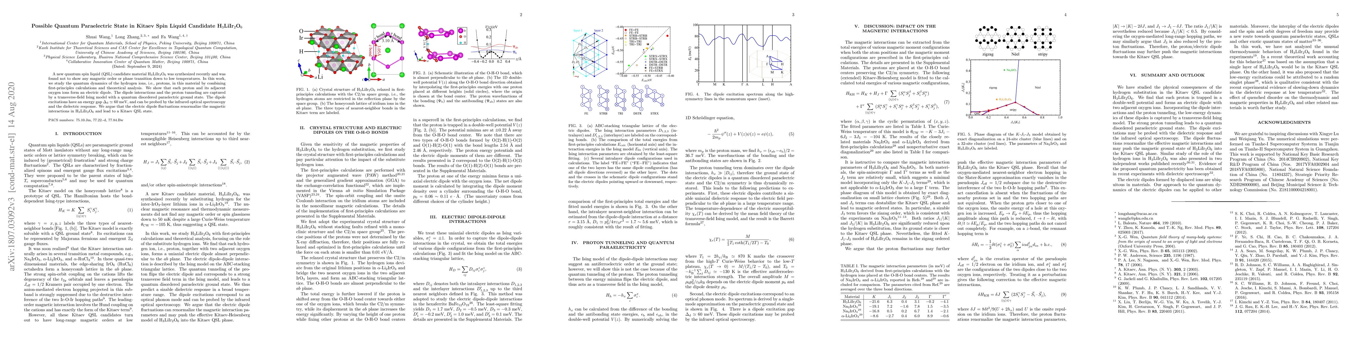 A new quantum spin liquid (QSL) candidate material H$_{3}$LiIr$_{2}$O$_{6}$ was synthesized recently and was found not to show any magnetic order or phase transition down to low temperatures. In this work, we study the quantum dynamics of the hydrogen ions, i.e., protons, in this material by combining first-principles calculations and theoretical analysis. We show that each proton and its adjacent oxygen ions form an electric dipole. The dipole interactions and the proton tunneling are captured by a transverse-field Ising model with a quantum disordered paraelectric ground state. The dipole excitations have an energy gap $\Delta_{\mathrm{d}}\simeq 60$ meV, and can be probed by the infrared optical spectroscopy and the dielectric response. We argue that the electric dipole fluctuations renormalize the magnetic interactions in H$_{3}$LiIr$_{2}$O$_{6}$ and lead to a Kitaev QSL state.