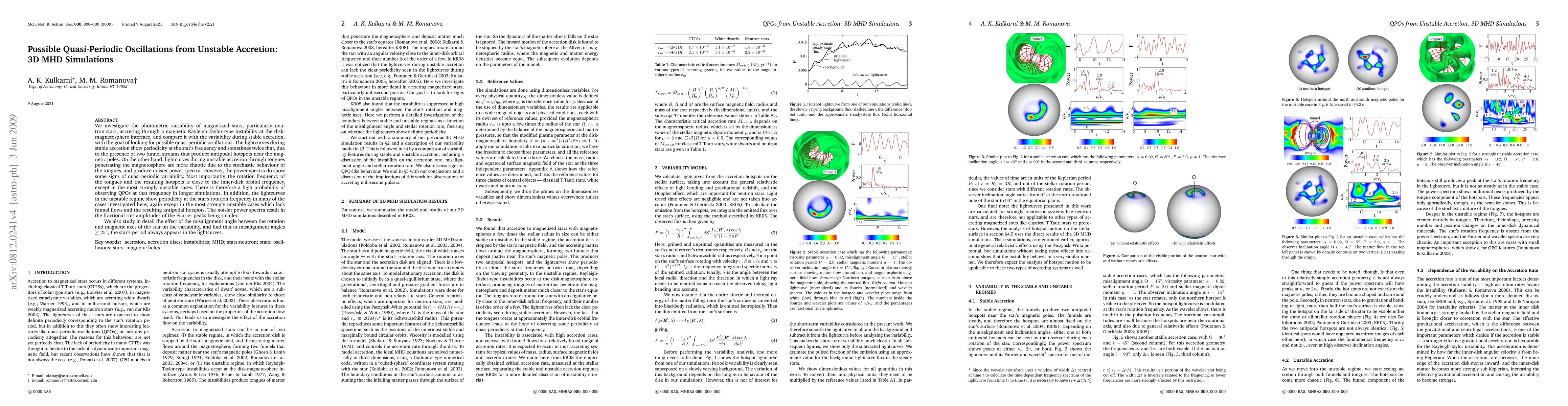 We investigate the photometric variability of magnetized stars, particularly neutron stars, accreting through a magnetic Rayleigh-Taylor-type instability at the disk-magnetosphere interface, and compare it with the variability during stable accretion, with the goal of looking for possible quasi-periodic oscillations. The lightcurves during stable accretion show periodicity at the star's frequency and sometimes twice that, due to the presence of two funnel streams that produce antipodal hotspots near the magnetic poles. On the other hand, lightcurves during unstable accretion through tongues penetrating the magnetosphere are more chaotic due to the stochastic behaviour of the tongues, and produce noisier power spectra. However, the power spectra do show some signs of quasi-periodic variability. Most importantly, the rotation frequency of the tongues and the resulting hotspots is close to the inner-disk orbital frequency, except in the most strongly unstable cases. There is therefore a high probability of observing QPOs at that frequency in longer simulations. In addition, the lightcurves in the unstable regime show periodicity at the star's rotation frequency in many of the cases investigated here, again except in the most strongly unstable cases which lack funnel flows and the resulting antipodal hotspots. The noisier power spectra result in the fractional rms amplitudes of the Fourier peaks being smaller. We also study in detail the effect of the misalignment angle between the rotation and magnetic axes of the star on the variability, and find that at misalignment angles $\gtrsim 25^\circ$, the star's period always appears in the lightcurves.