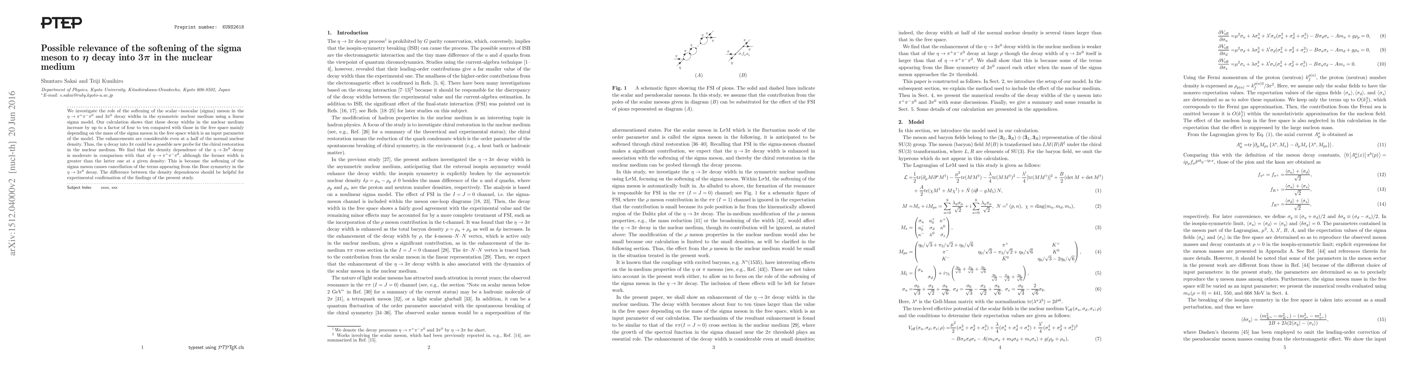 We investigate the role of the softening of the scalar-isoscalar (sigma) meson in the $\eta\rightarrow\pi^+\pi^-\pi^0$ and $3\pi^0$ decay widths in the symmetric nuclear medium using a linear sigma model. Our calculation shows that these decay widths in the nuclear medium increase by up to a factor of four to ten compared with those in the free space mainly depending on the mass of the sigma meson in the free space, which is an input parameter of the model. The enhancements are considerable even at a half of the normal nuclear density. Thus, the $\eta$ decay into $3\pi$ could be a possible new probe for the chiral restoration in the nuclear medium. We find that the density dependence of the $\eta\rightarrow3\pi^0$ decay is moderate in comparison with that of $\eta\rightarrow\pi^+\pi^-\pi^0$, although the former width is greater than the latter one at a given density. This is because the softening of the sigma meson causes cancellation of the terms appearing from the Bose symmetry in the $\eta\rightarrow3\pi^0$ decay. The difference between the density dependences should be helpful for experimental confirmation of the findings of the present study.
