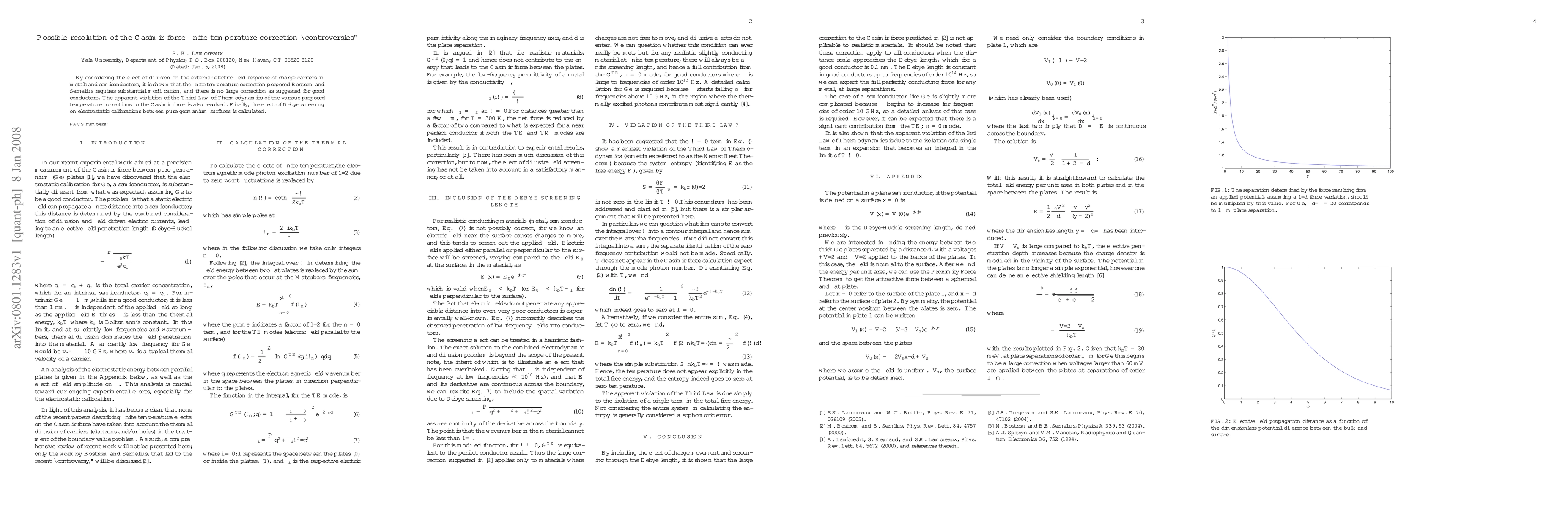 This paper argues that the finite temperature correction to the Casimir force, as proposed by Bostrom and Sernelius, needs significant revision due to the influence of diffusion on charge carriers. It resolves the apparent violation of the Third Law of Thermodynamics in previous corrections and calculates the effect of Debye screening on electrostatic calibrations between pure germanium surfaces.