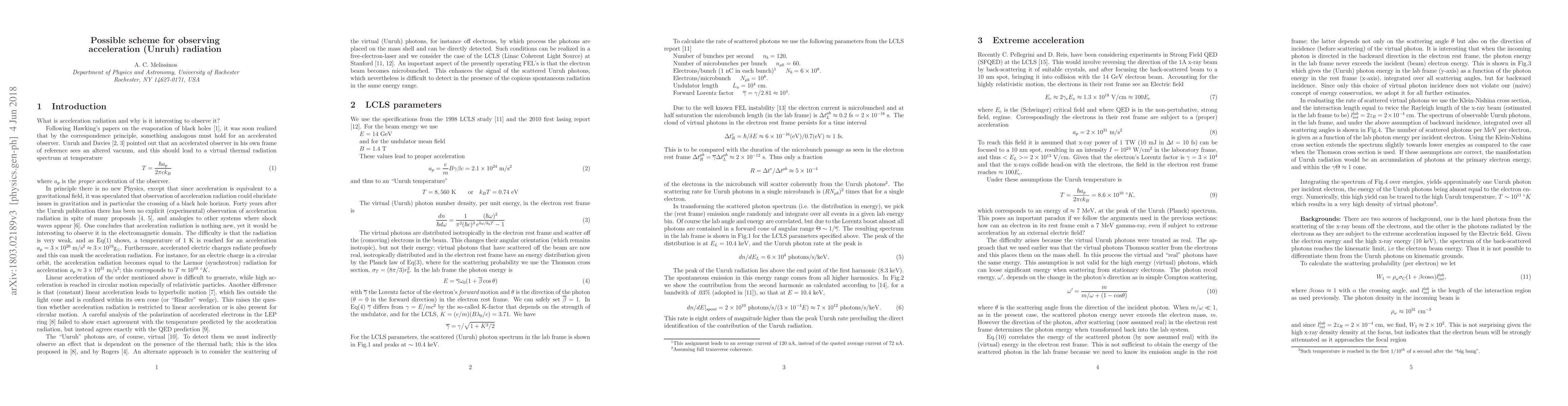 The paper presents a novel scheme for observing Unruh radiation using FEL technology, combining insights from special relativity, quantum field theory, and accelerator physics.
