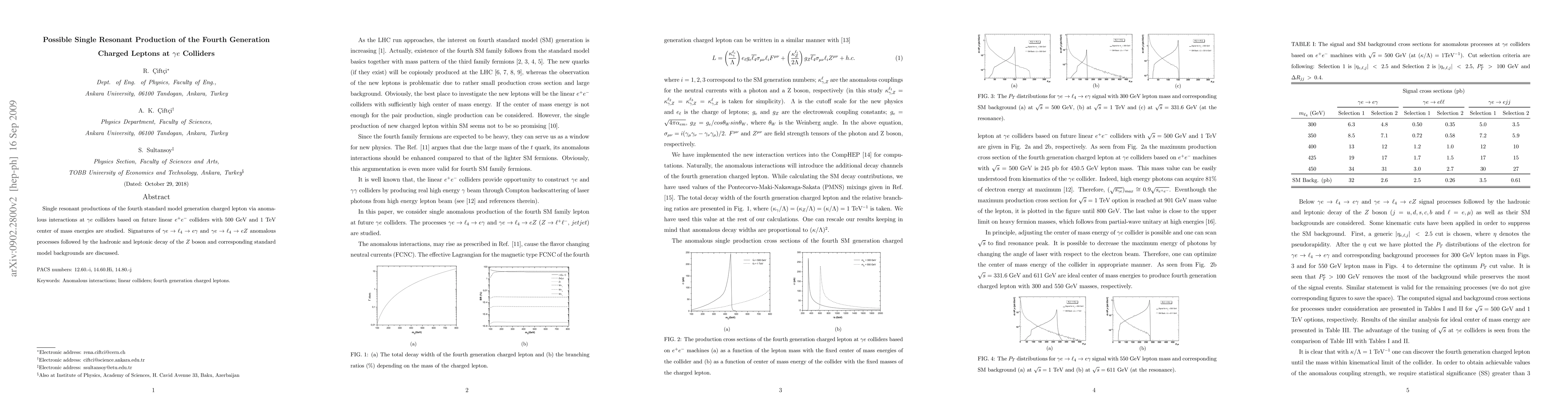 This paper investigates the potential single resonant production of fourth-generation charged leptons at future gamma-electron colliders operating at 500 GeV and 1 TeV. It examines anomalous interaction signatures and determines the minimum luminosity required to observe these processes, alongside the achievable values of anomalous coupling strengths.