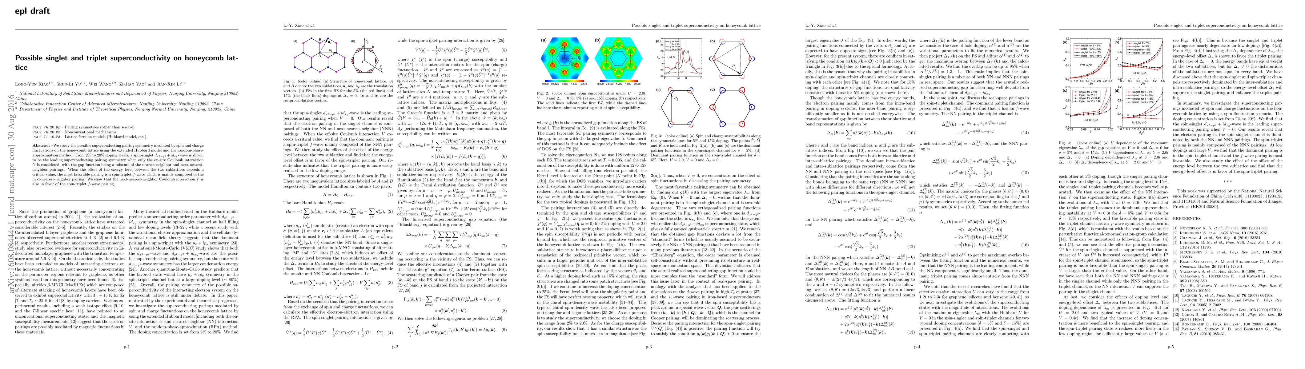 Researchers investigate superconductivity on a honeycomb lattice, finding that spin-singlet pairing symmetry is favored at low doping levels, while spin-triplet $f$-wave pairing becomes more prominent at higher doping levels.