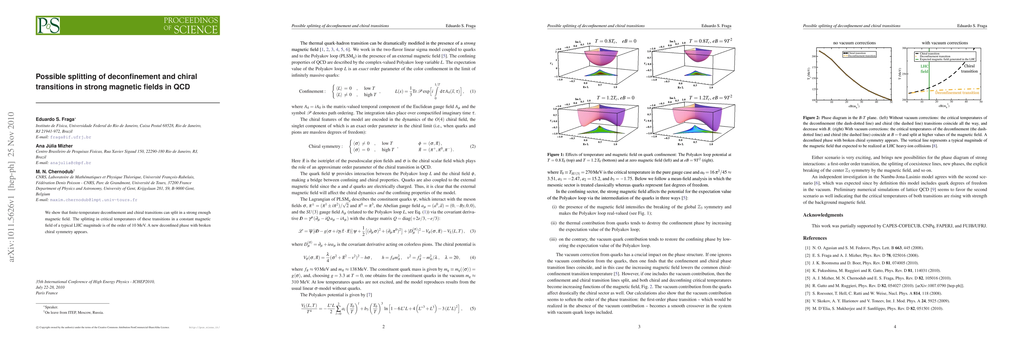 Title: Possible Splitting of Deconfinement and Chiral Transitions in Strong Magnetic Fields in QCD Summary: Research demonstrates that strong magnetic fields, such as those found at the LHC, can separate deconfinement and chiral transitions in QCD, leading to a new deconfined phase with broken chiral symmetry and a temperature difference of about 10 MeV.