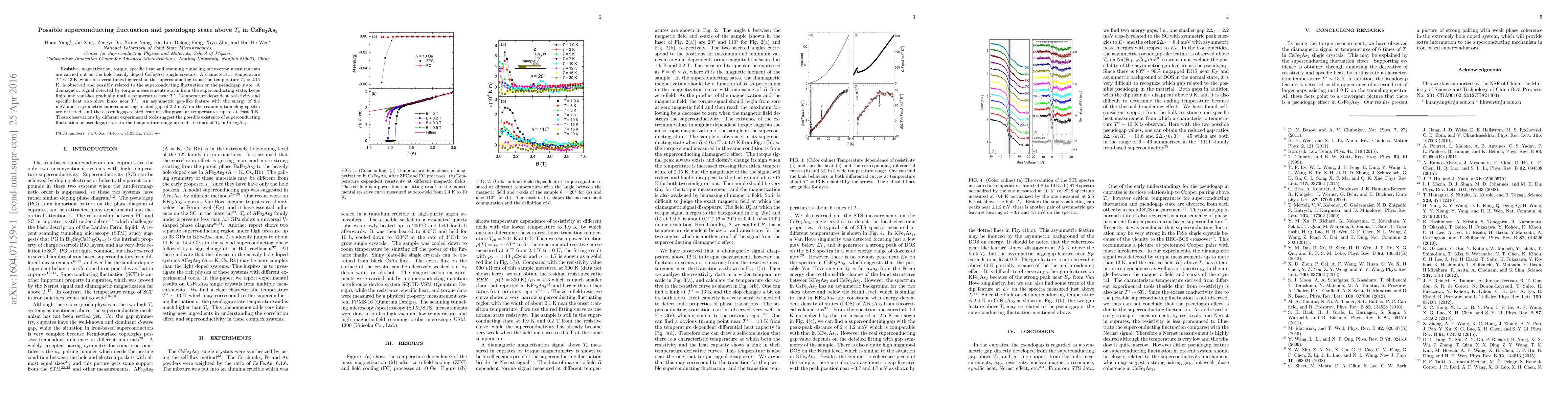 This study on CsFe$_2$As$_2$ reveals a characteristic temperature $T^*\sim13$ K above the superconducting transition temperature $T_c=2.15$ K, suggesting the presence of superconducting fluctuations or a pseudogap state. Various measurements indicate pseudogap-related features and a diamagnetic signal that vanish near $T^*$.