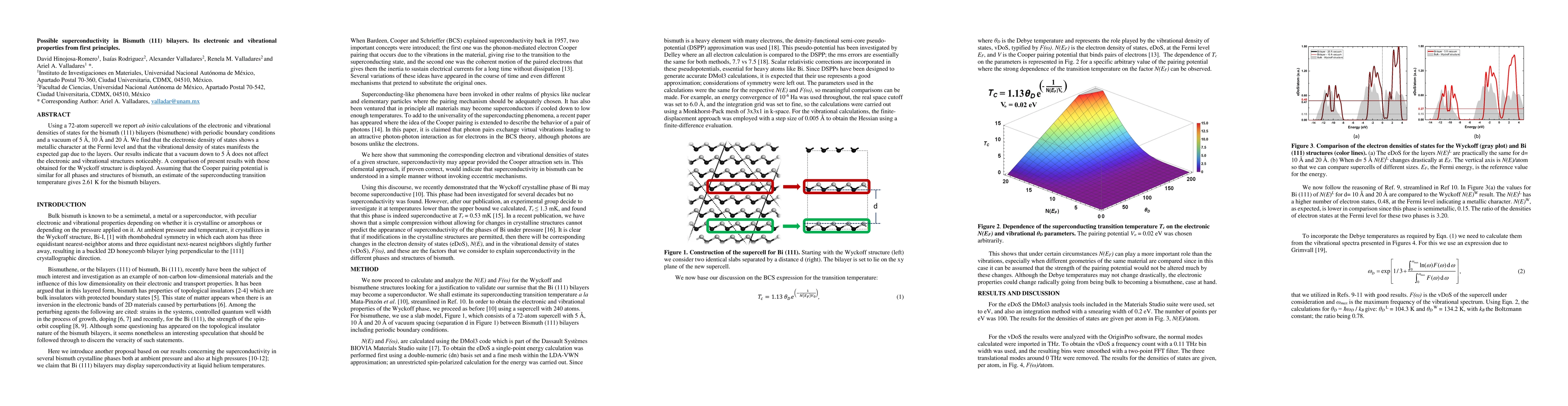 Researchers found metallic electronic properties at bismuth bilayers with a predicted superconducting transition temperature of 2.61 K, suggesting possible superconductivity in this material.