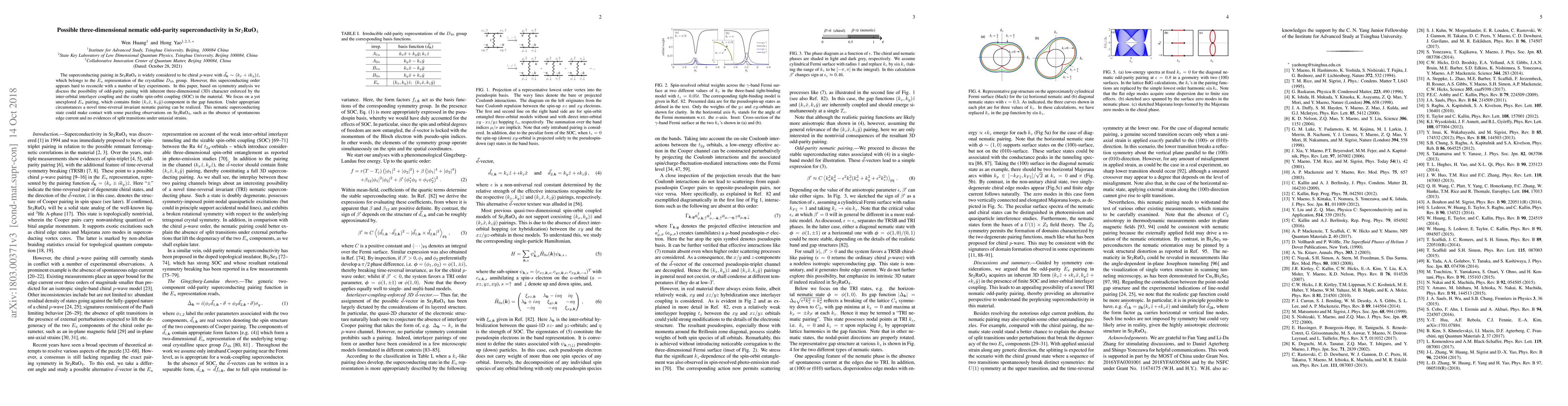 This paper explores the possibility of a three-dimensional nematic odd-parity superconducting pairing in Sr$_2$RuO$_4$, suggesting an $E_u$ representation with $k_z \hat x$ and $k_z \hat y$ components, potentially resolving discrepancies in experimental observations. This novel nematic state could explain phenomena like the absence of spontaneous edge currents and lack of split transitions under strain.