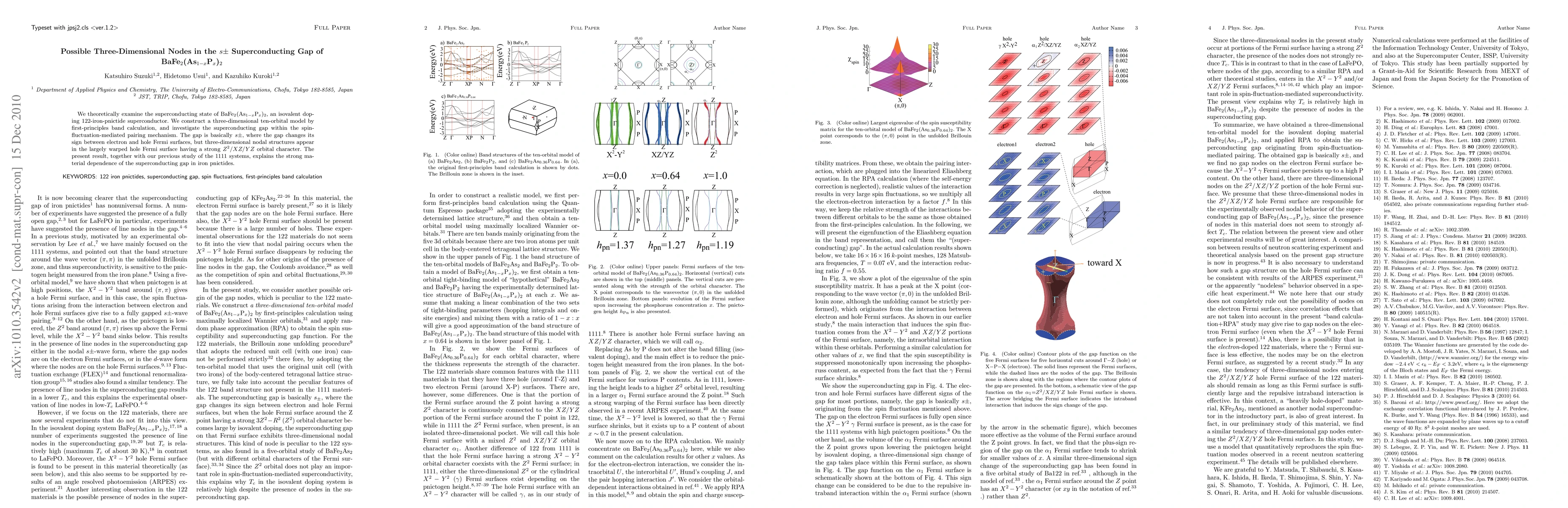 We examine theoretically the superconducting state of BaFe$_2$(As$_{1-x}$P$_x$)$_2$, an isovalent doping 122 iron pnictide superconductor. We construct a three dimensional ten orbital model from first principles band calculation, and investigate the superconducting gap within the spin fluctuation mediated pairing mechanism. The gap is basically $s\pm$, where the gap changes its sign between electron and hole Fermi surfaces, but three dimensional nodal structures appear in the largely warped hole Fermi surface having strong $Z^2/XZ/YZ$ orbital character. The present result, together with our previous study on 1111 systems, explains the strong material dependence of the superconducting gap in the iron pnictides.