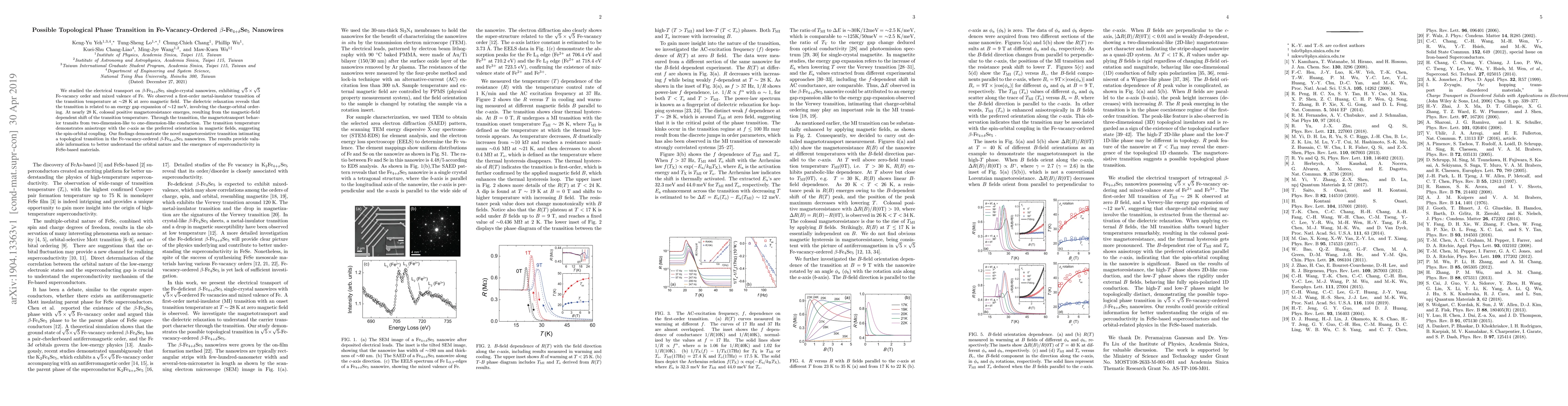 Fe-vacancy-ordered $eta$-Fe$_{4+ heta}$Se$_{5}$ nanowires exhibit a first-order metal-insulator transition at 28 K, accompanied by an energy gap expansion and colossal magnetoresistance.