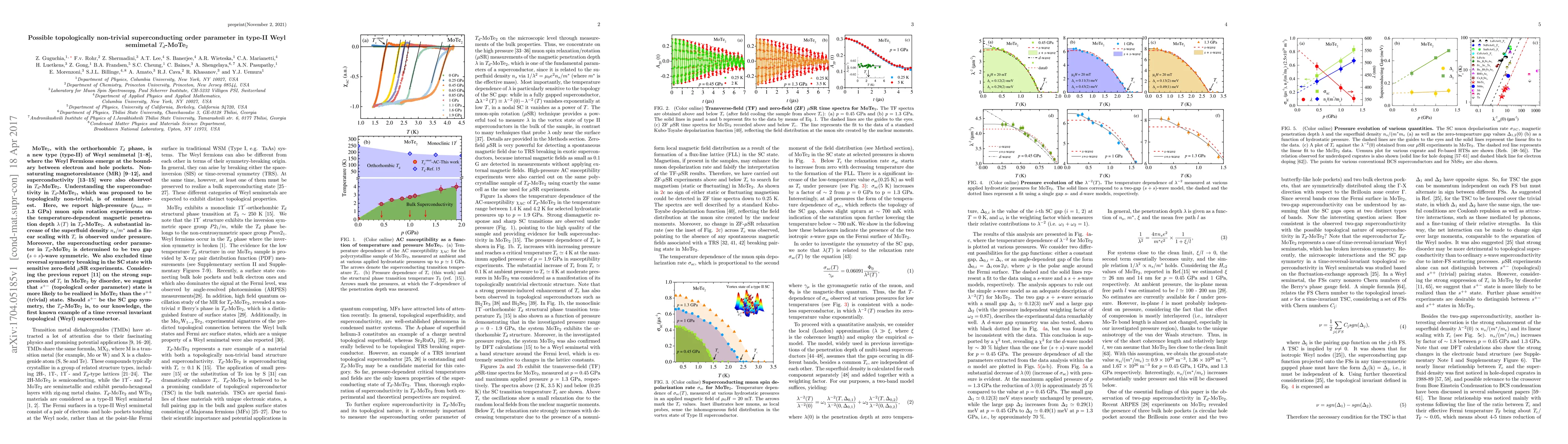 High-pressure experiments reveal a topologically non-trivial superconducting order parameter in T_d-MoTe_2, with a linear scaling of the superfluid density with temperature.