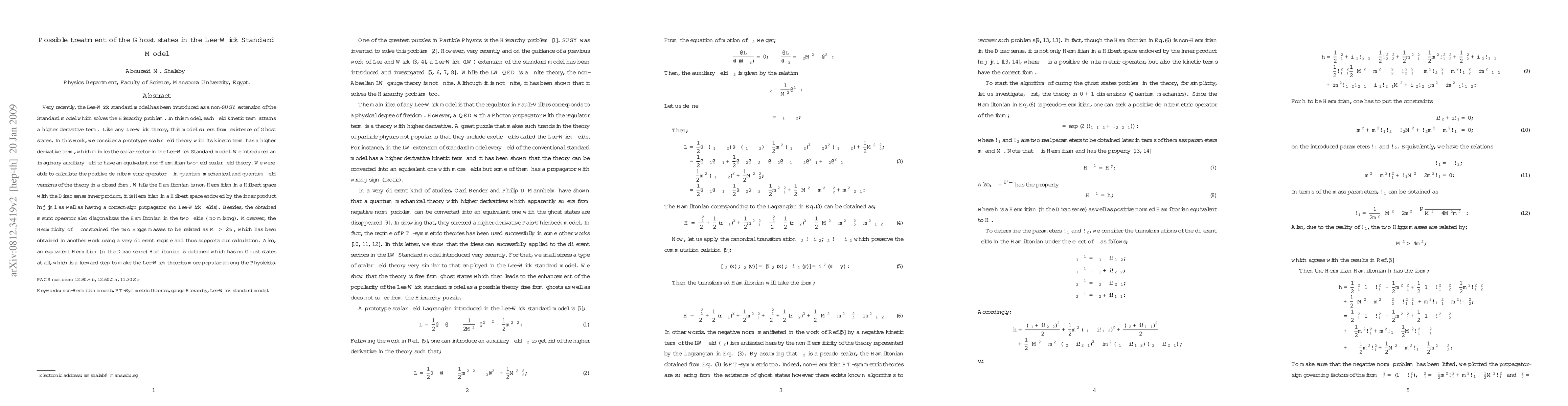 Lee-Wick theory, this model suffers from existence of Ghost states. In this