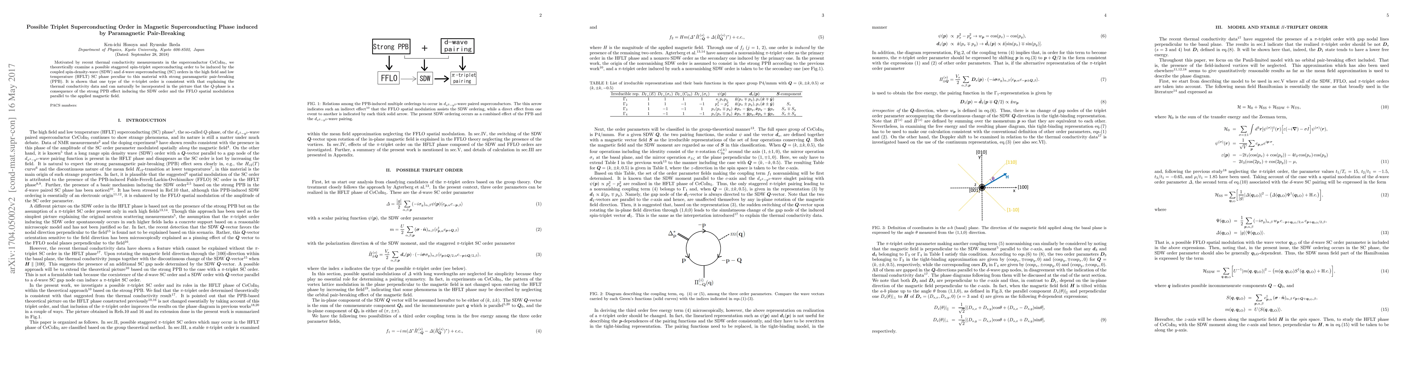 This paper explores the theoretical possibility of a staggered spin-triplet superconducting order in CeCoIn5, driven by coupled spin-density-wave and d-wave superconducting orders under high field and low temperature conditions, with a focus on the effects of paramagnetic pair-breaking. The proposed $\pi$-triplet order is consistent with thermal conductivity data and fits within a framework where the Q-phase emerges due to strong paramagnetic pair-breaking effects.