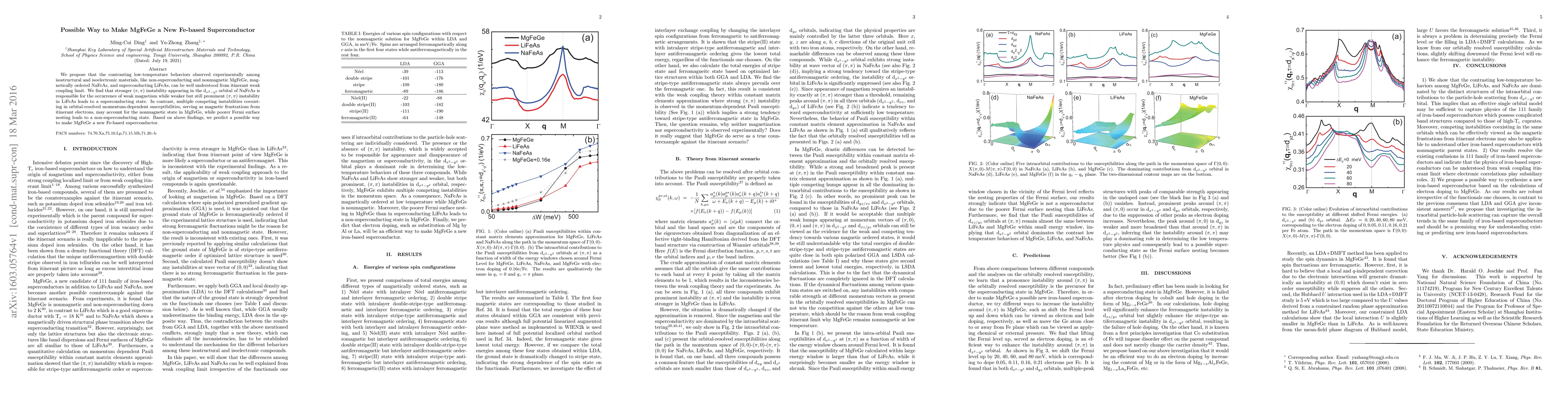 We propose that the contrasting low-temperature behaviors observed experimentally among isostructural and isoelectronic materials, like non-superconducting and nonmagnetic MgFeGe, magnetically ordered NaFeAs, and superconducting LiFeAs, can be well understood from itinerant weak coupling limit. We find that stronger $(\pi,\pi)$ instability appearing in the d$_{x^2-y^2}$ orbital of NaFeAs is responsible for the occurrence of weak magnetism while weaker but still prominent $(\pi,\pi)$ instability in LiFeAs leads to a superconducting state. In contrast, multiple competing instabilities coexisting in orbital-resolved momentum-dependent susceptibilities, serving as magnetic frustrations from itinerant electrons, may account for the nonmagnetic state in MgFeGe, while poorer Fermi surface nesting leads to a non-superconducting state. Based on above findings, we predict a possible way to make MgFeGe a new Fe-based superconductor.