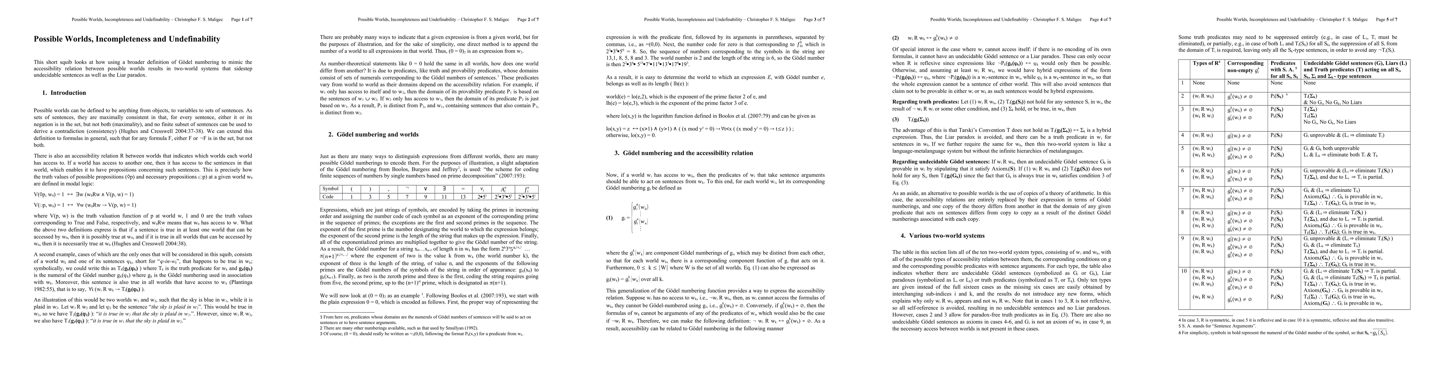 This work presents a fresh approach to possible worlds semantics by leveraging a tailored Gödel numbering function, offering solutions to classical incompleteness and undefinability problems.