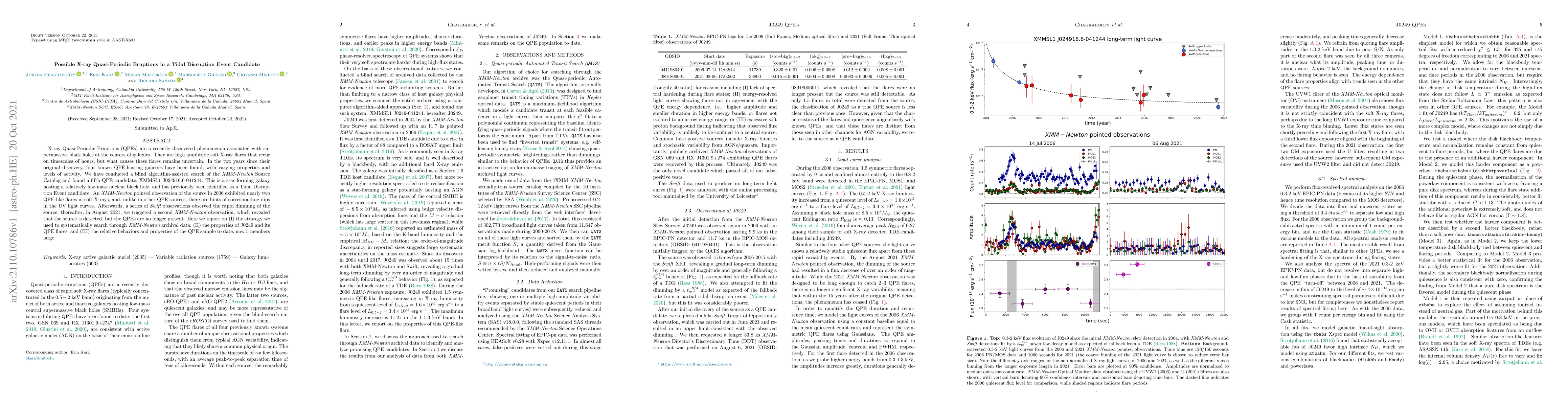 This paper reports the discovery of a fifth candidate for X-ray Quasi-Periodic Eruptions (QPEs) in the star-forming galaxy XMMSL1 J024916.6-041244, previously identified as a Tidal Disruption Event. The study reveals QPE-like flares in soft X-rays, with corresponding dips in UV light curves, followed by a rapid dimming, and discusses the implications for the understanding of QPEs.