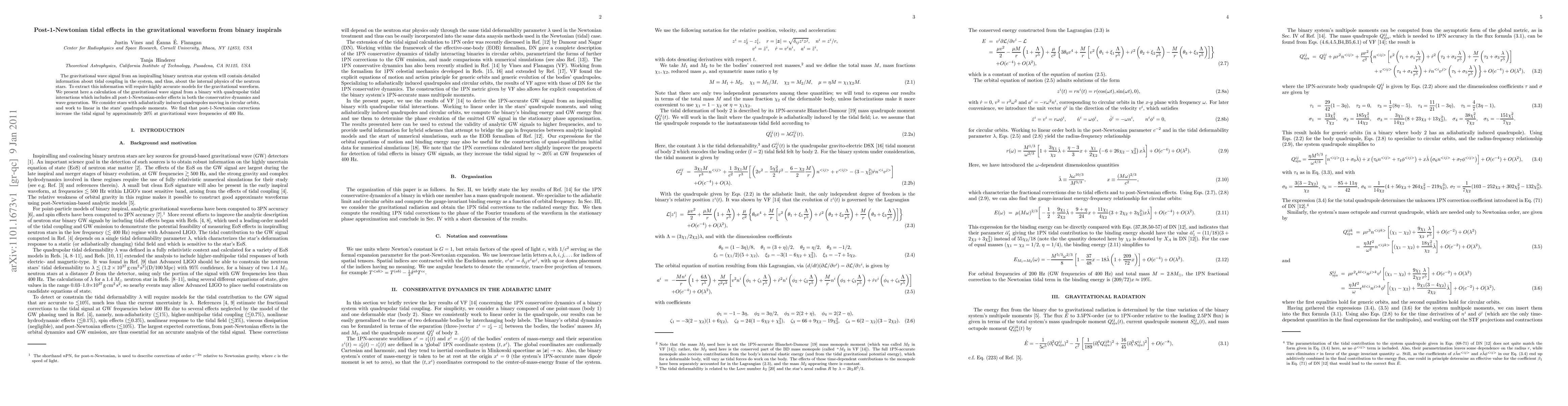 The research presents a calculation of the gravitational wave signal from a binary with quadrupolar tidal interactions, including all post-1-Newtonian-order effects in both conservative dynamics and wave generation. It considers stars with adiabatically induced quadrupoles moving in circular orbits, working to linear order in the stars' quadrupole moments.