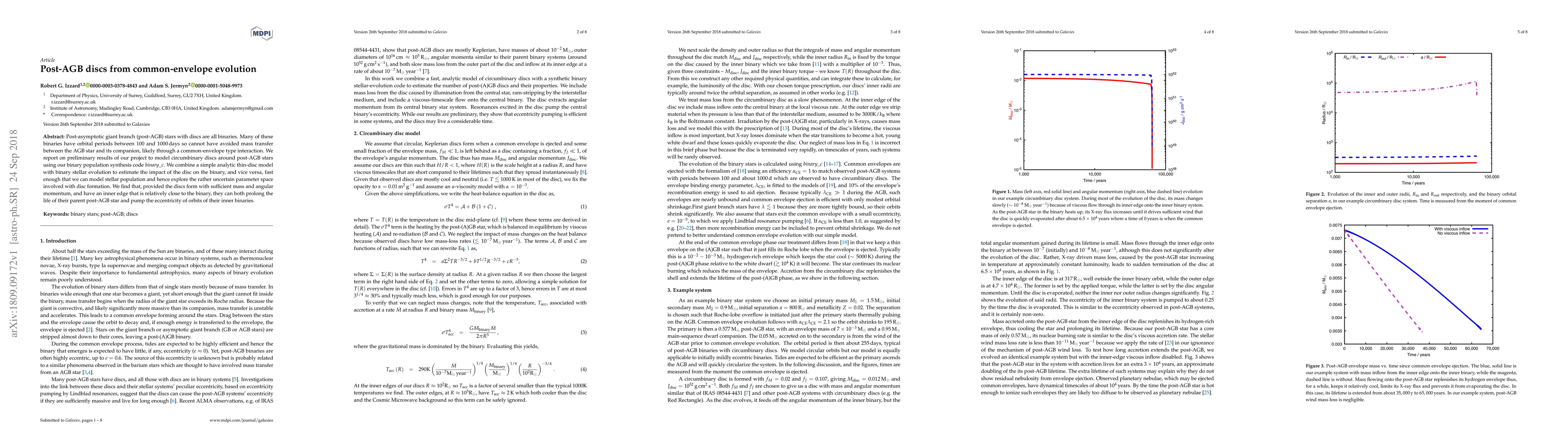 Post-asymptotic giant branch (post-AGB) stars with discs are all binaries. Many of these binaries have orbital periods between 100 and 1000 days so cannot have avoided mass transfer between the AGB star and its companion, likely through a common-envelope type interaction. We report on preliminary results of our project to model circumbinary discs around post-AGB stars using our binary population synthesis code binary_c. We combine a simple analytic thin-disc model with binary stellar evolution to estimate the impact of the disc on the binary, and vice versa, fast enough that we can model stellar populations and hence explore the rather uncertain parameter space involved with disc formation. We find that, provided the discs form with sufficient mass and angular momentum, and have an inner edge that is relatively close to the binary, they can both prolong the life of their parent post-AGB star and pump the eccentricity of orbits of their inner binaries.